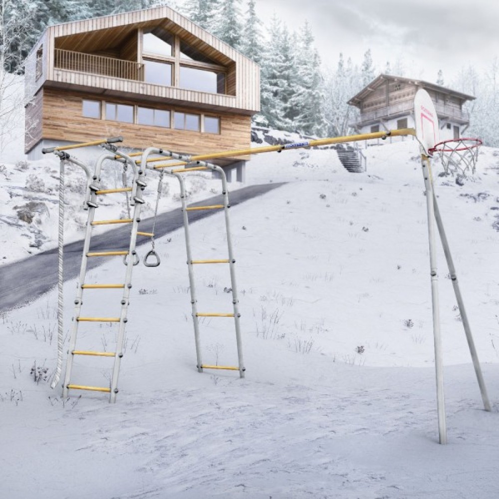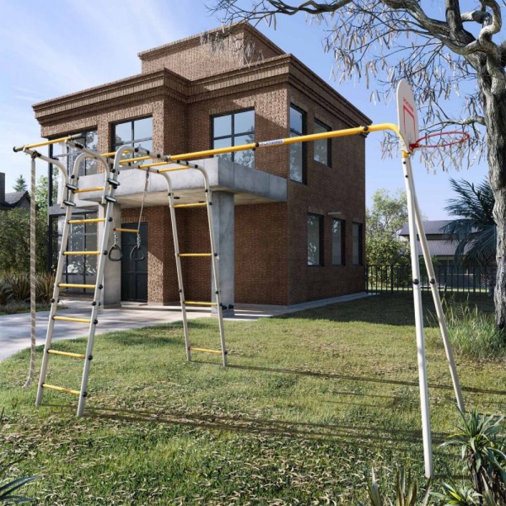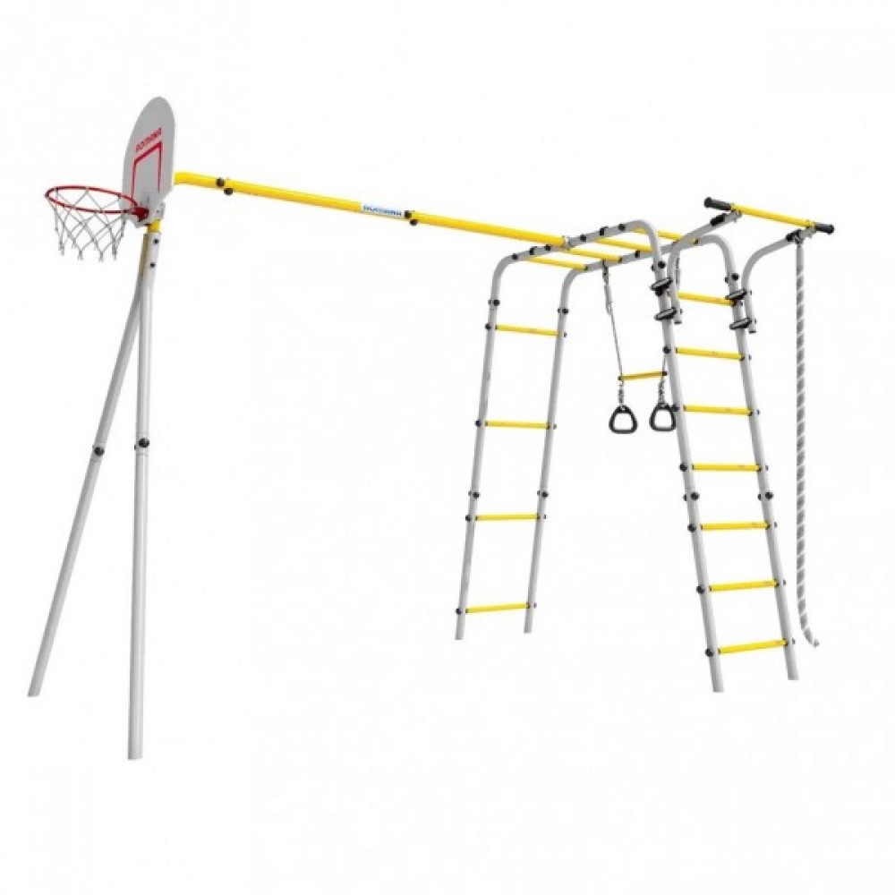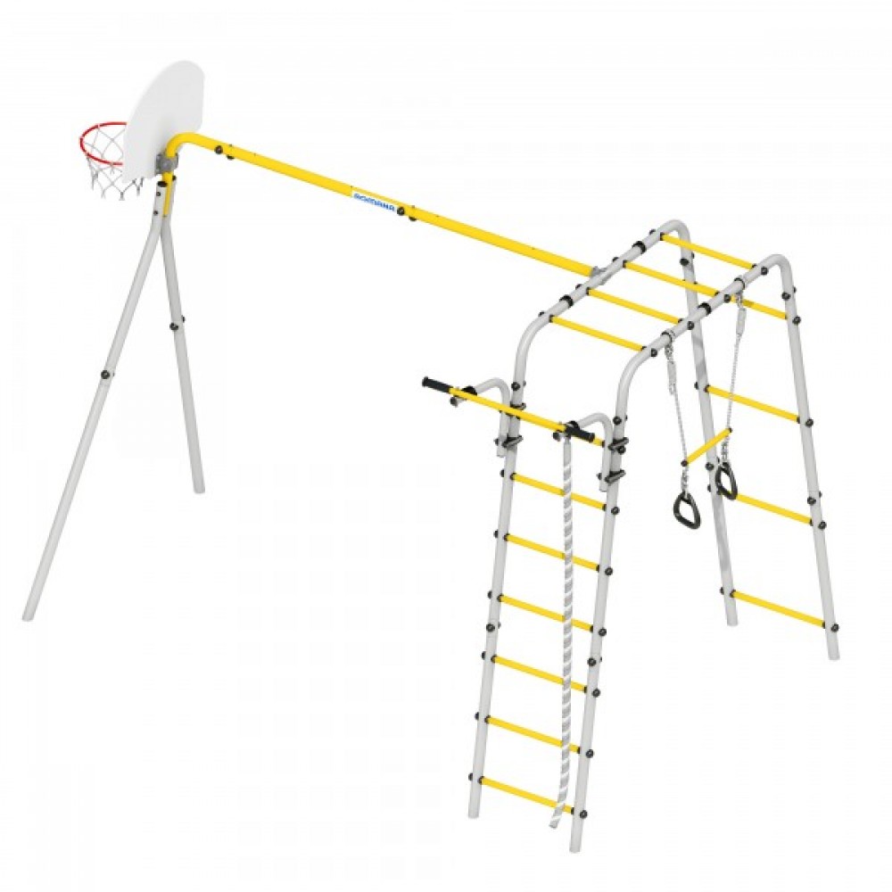 Комплектация: баскетбольное кольцо (d=0,3 м), канат, кольца с перекладиной, гимнастическая лестница, рукоход, турник подвижный