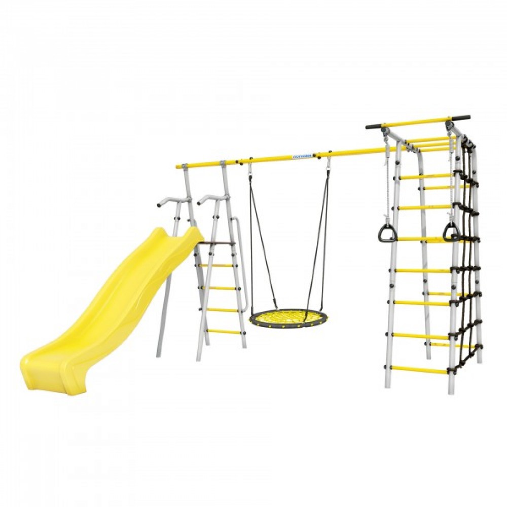 Дачный комплекс Богатырь Плюс 2 MAX + ГНЕЗДО качели-гнездо 80 см Romana 103.12.07 (серый/жёлтый)