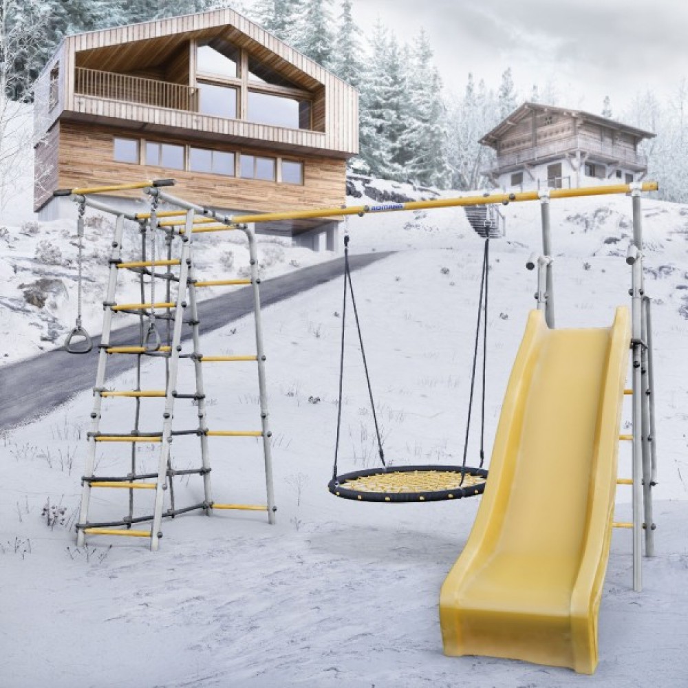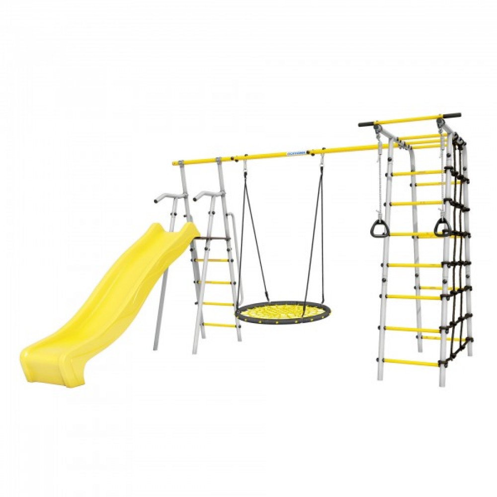 Дачный комплекс Богатырь Плюс 2 MAX + Качели ГНЕЗДО-СЕТКА 100 см Romana 103.12.07 (серый/жёлтый)