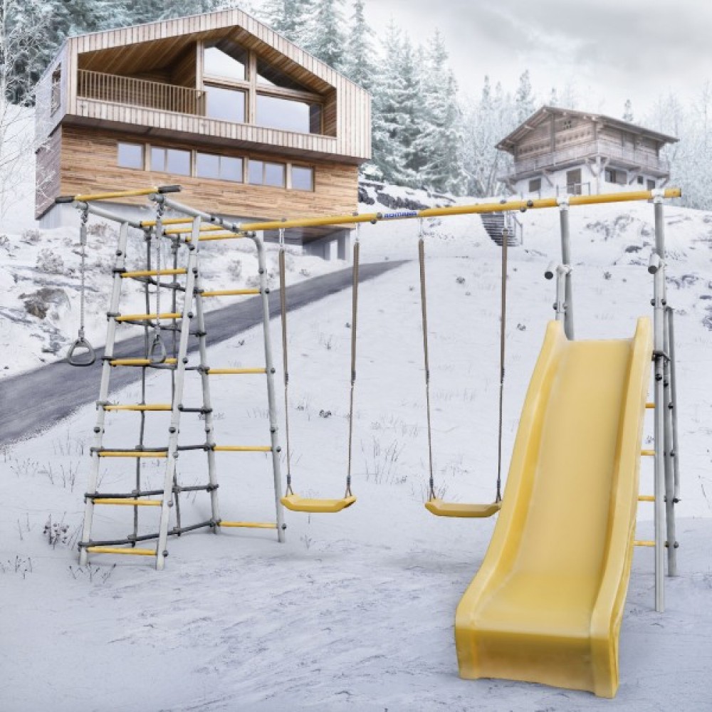 Дачный комплекс Богатырь Плюс 2 MAX + ПЛАСТИКОВЫЕ качели Romana 103.12.07 (серый/жёлтый)