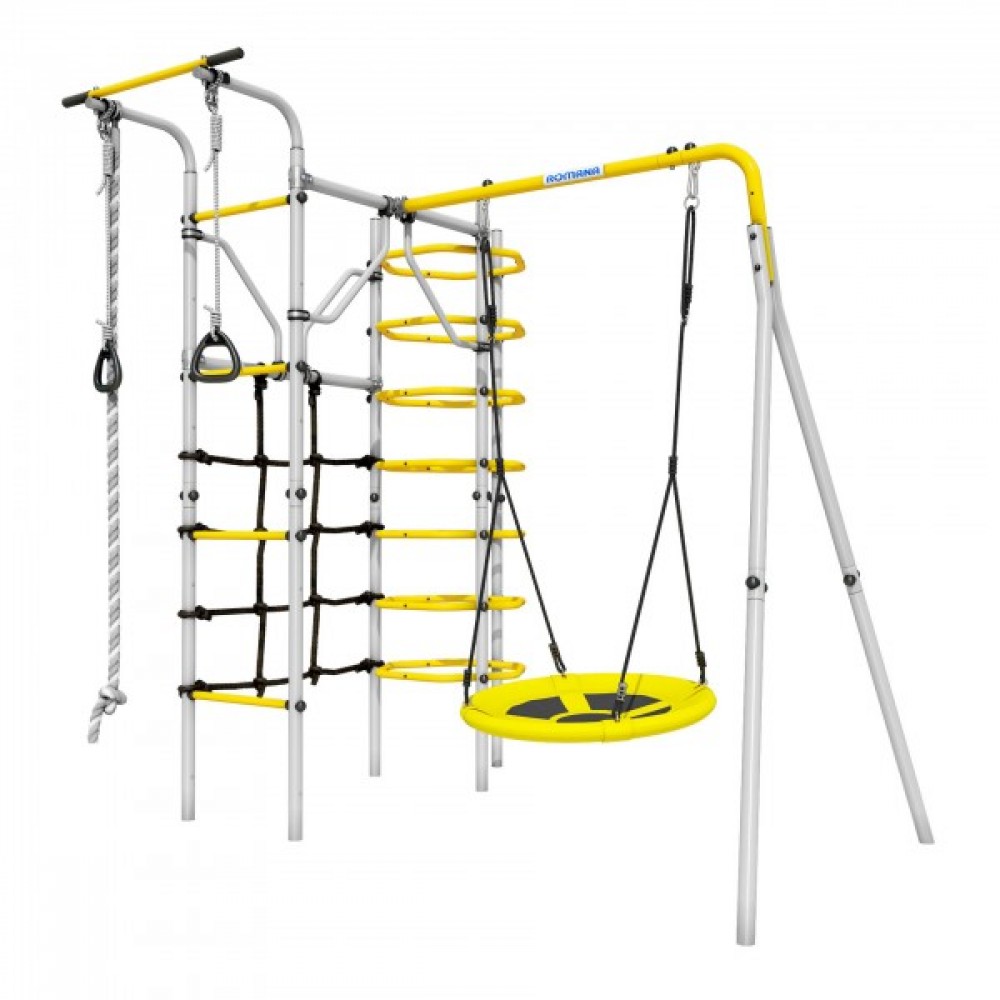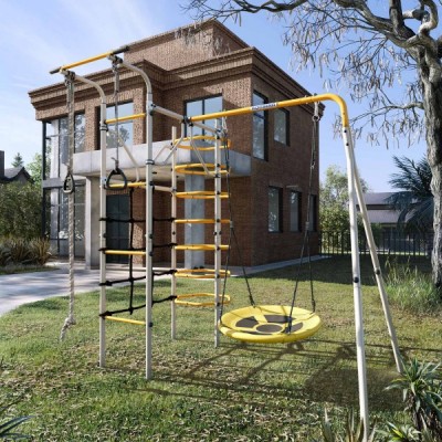 Комплектация: канат, кольца, веревочный лаз, лаз кольцевой, турник неподвижный, качели гнездо
