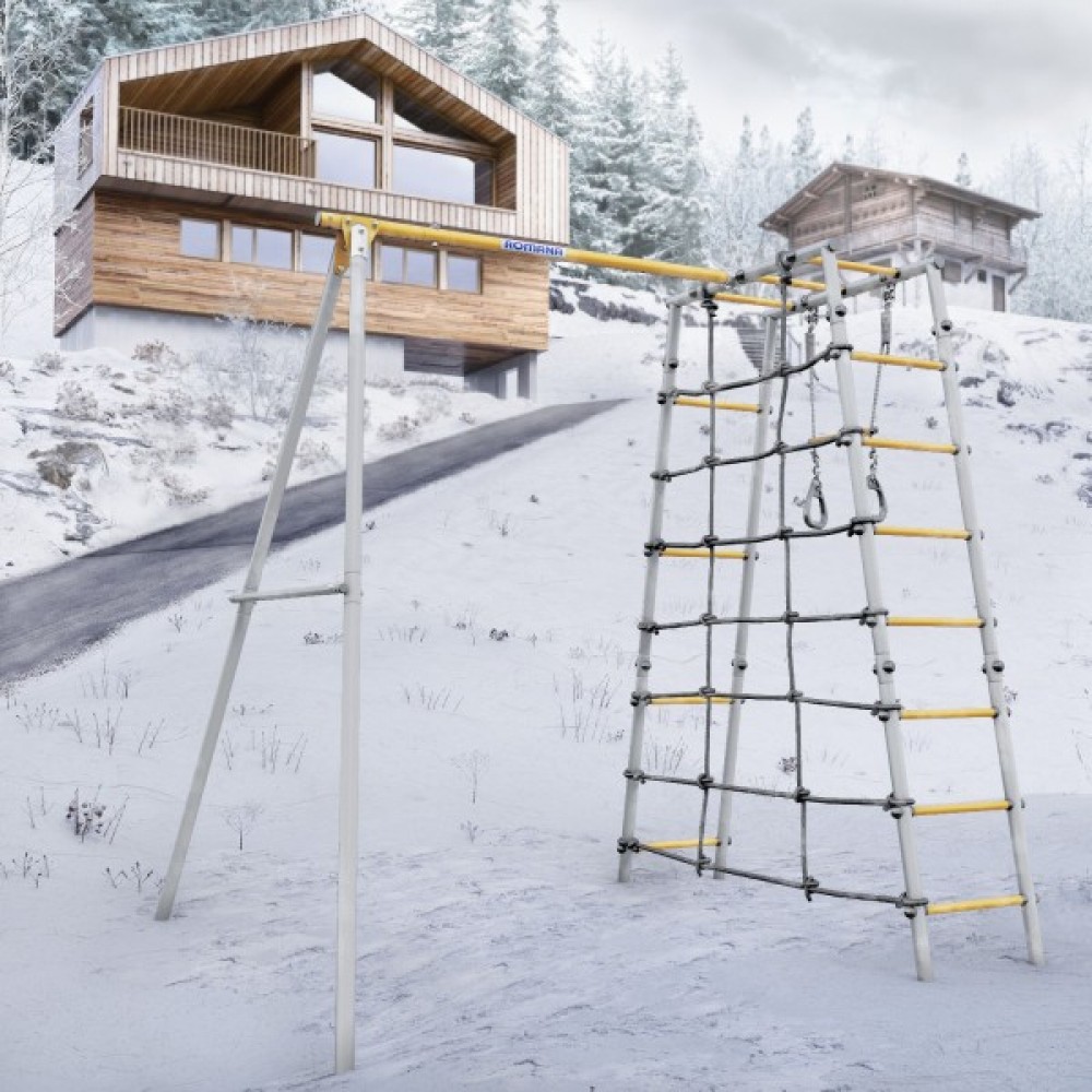 Комплектация: кольца с перекладиной, веревочный лаз, гимнастическая лестница, рукоход
