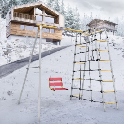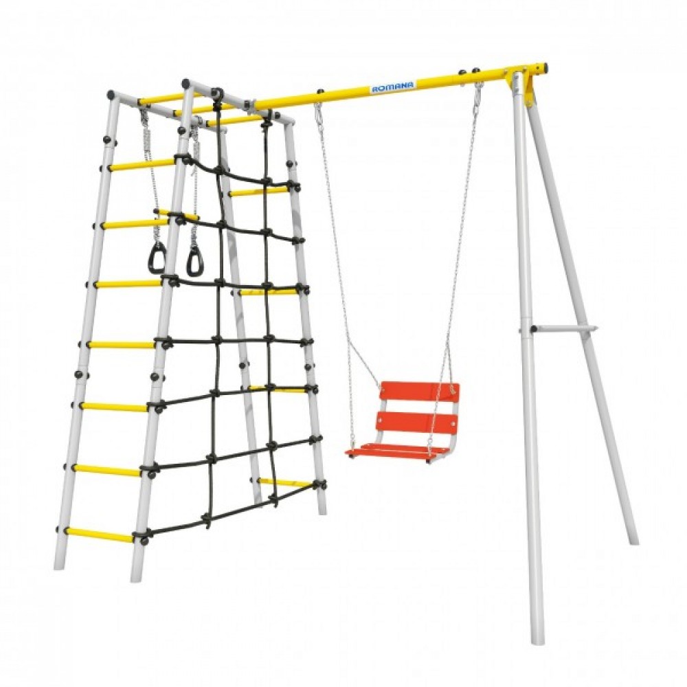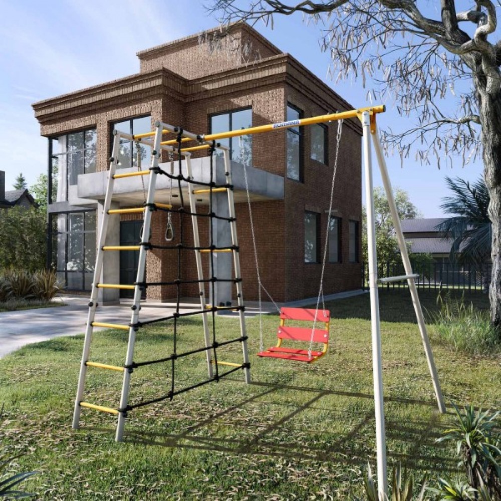 Комплектация: кольца с перекладиной, веревочный лаз, гимнастическая лестница, рукоход, качели цепные