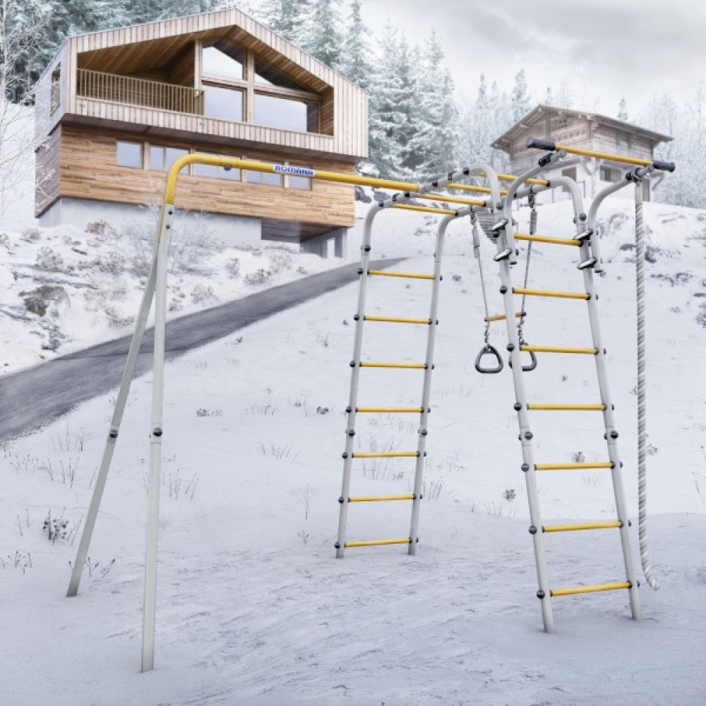 Комплектация: канат, кольца с перекладиной, гимнастическая лестница, рукоход, турник подвижный