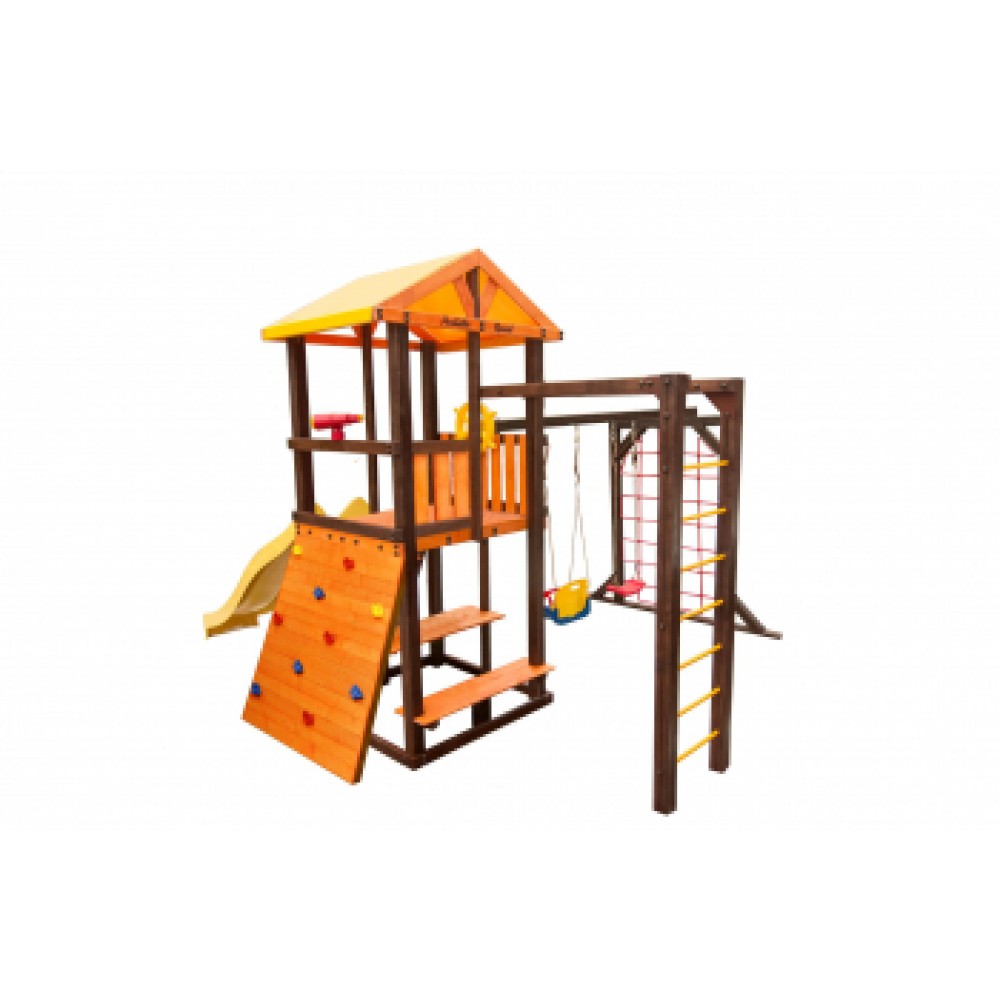- игровой домик, столик, лавочка - 2 шт, лестница, скат, ручка пластиковая - 2 шт, Р-опция, П-опция, качели "Лодочка", качели "Малыш", канат с зацепами, штурвал "Шторм", бинокль "Капитан", скалодром большой