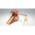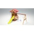Каркас изготавливается из экологичного клееного бруса. Этот натуральный материал прочен и долговечен. Он не меняет своих форм и размеров, поэтому его безопасно использовать для строительства детских площадок. Дерево покрыто 2 слоями водостойкой краски, обладающей сертификатом качества.
