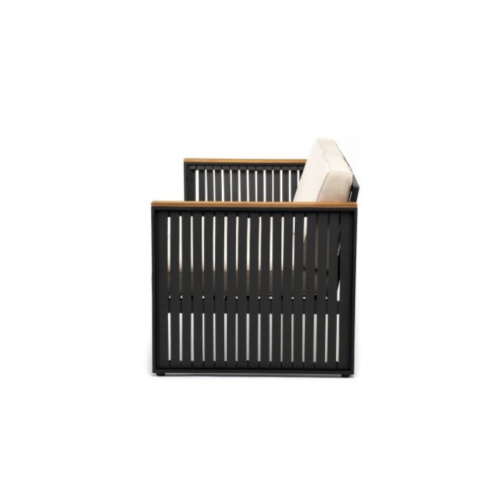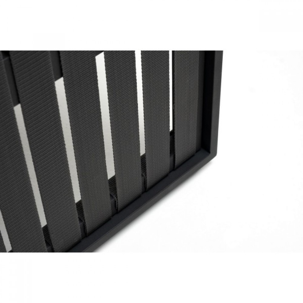 - Каркас мебели изготовлен из прочного алюминия с порошковым покрытием, защищающим его от погодных условий и коррозии. Цвет каркаса – темно-серый графит