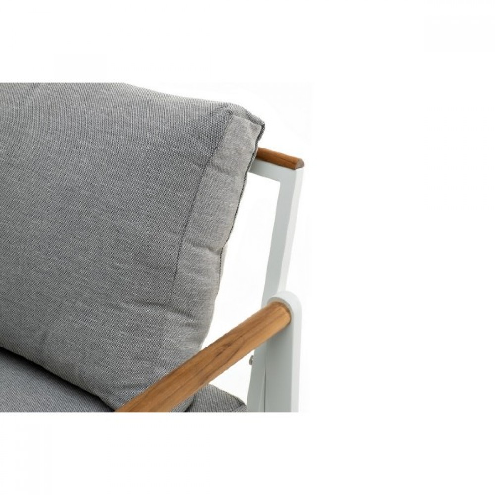 Дополняют конструкцию элементы из массива тика. Мягкие элементы мебели выполнены из водоотталкивающей ткани Olefin.