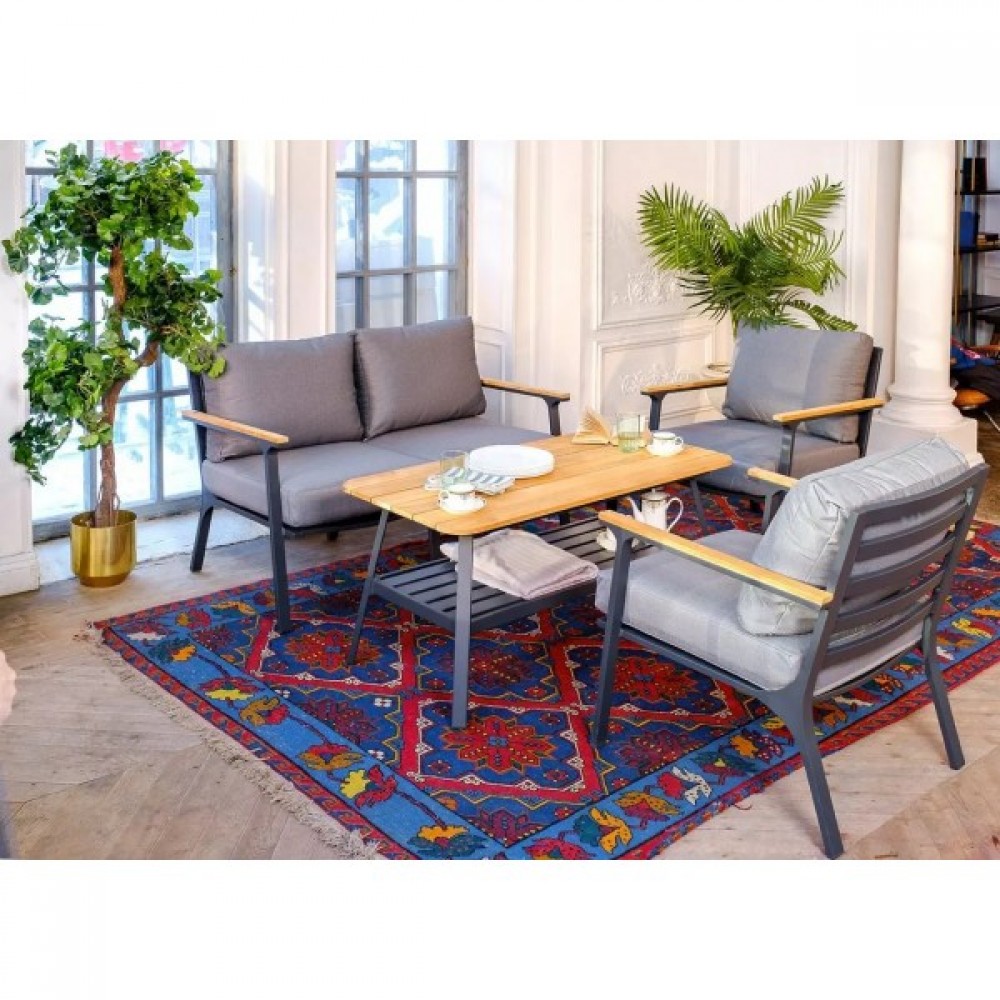 CONCORDE – это стиль и элегантность на вашей веранде. Материал — алюминий, цвет каркаса белый, подлокотники – натуральный тик. Подушки в комплекте , ткань подушек – Olefin, цвет подушек темно-серый