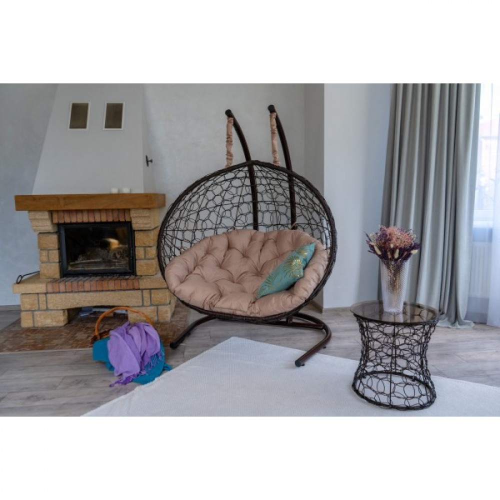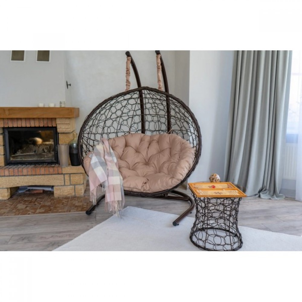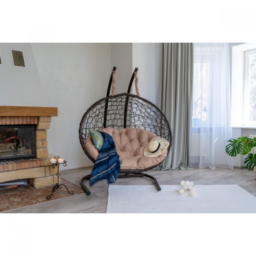 Двухместное подвесное кресло Риторика Магна коричневое с бежевой подушкой