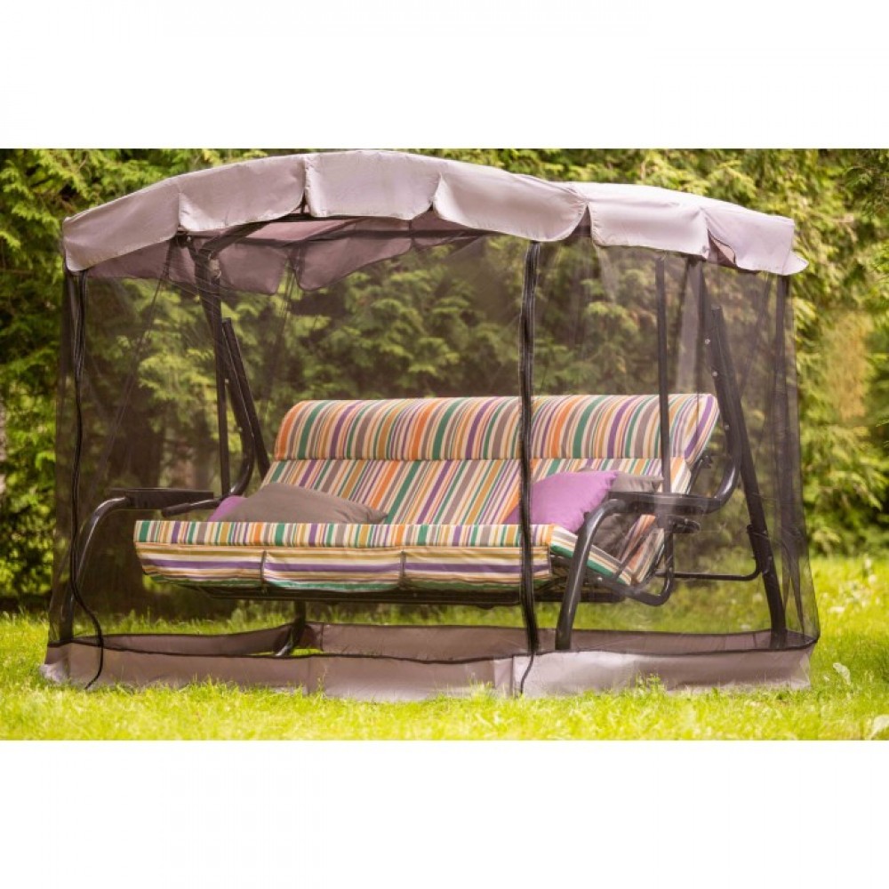 Тент: ткань с водоотталкивающей отделкой 100% п/э плотность 125г/м2 или 90г/м2 , с противомоскитной сеткой (полотно гардинное основовязаное 100% п/э плотность 39г/м2 - фиксация сетки на тканевом тенте осуществляется с помощью горизонтальных и вертикальных застежек – «молний».