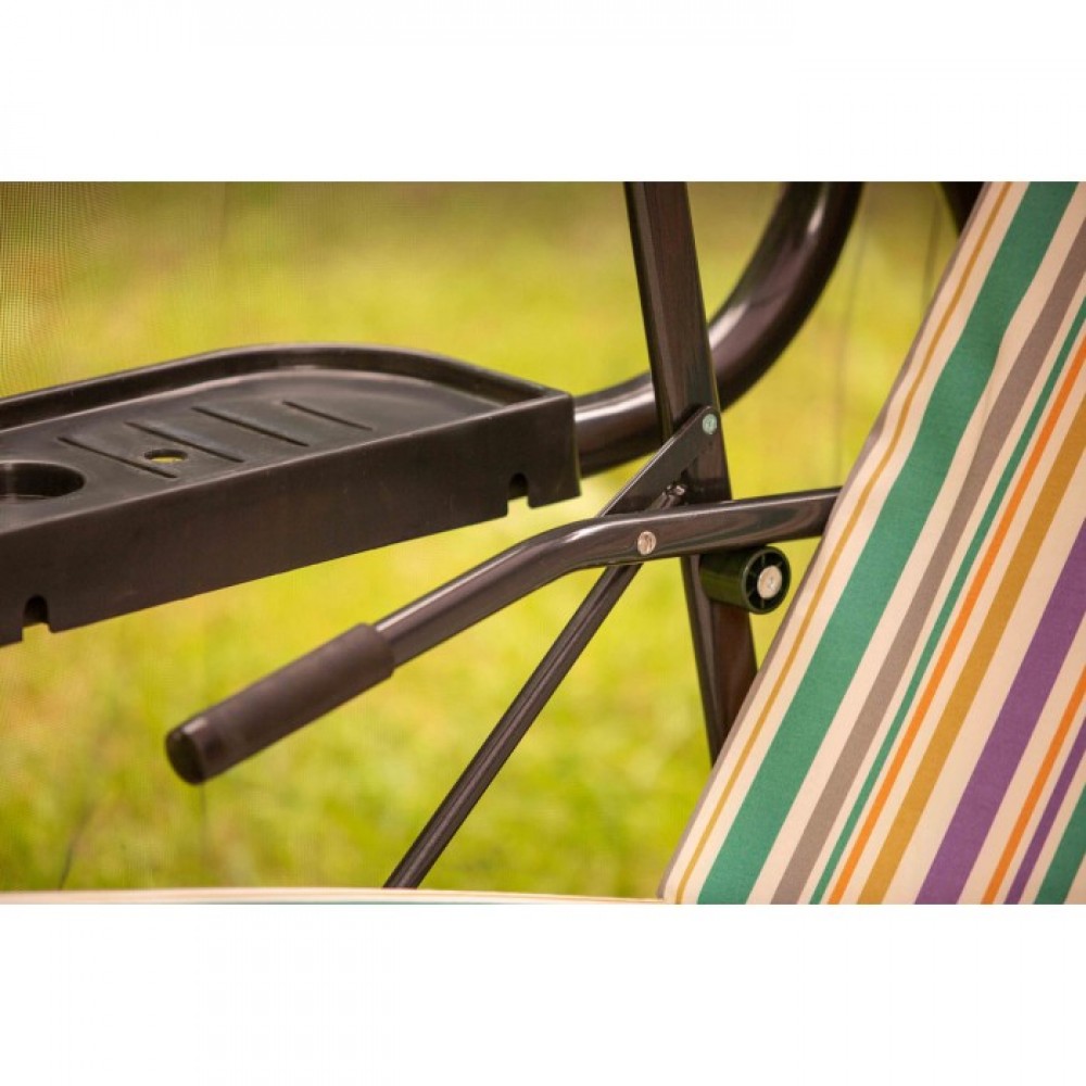 Регулировка спинки: для раскладывания спинки поднимается ручка трансформации и фиксаторы, расположенные на спинке, защелкиваются на дуге.