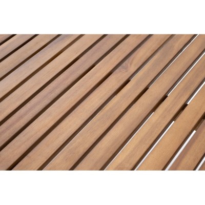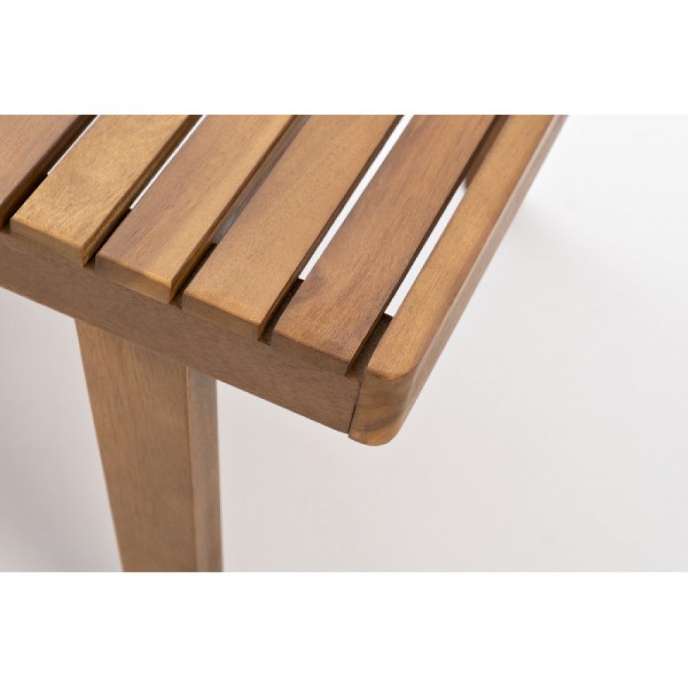 MONA – современная коллекция садовой мебели из акации в скандинавском стиле в комбинации массива акации и бежевых подушек.