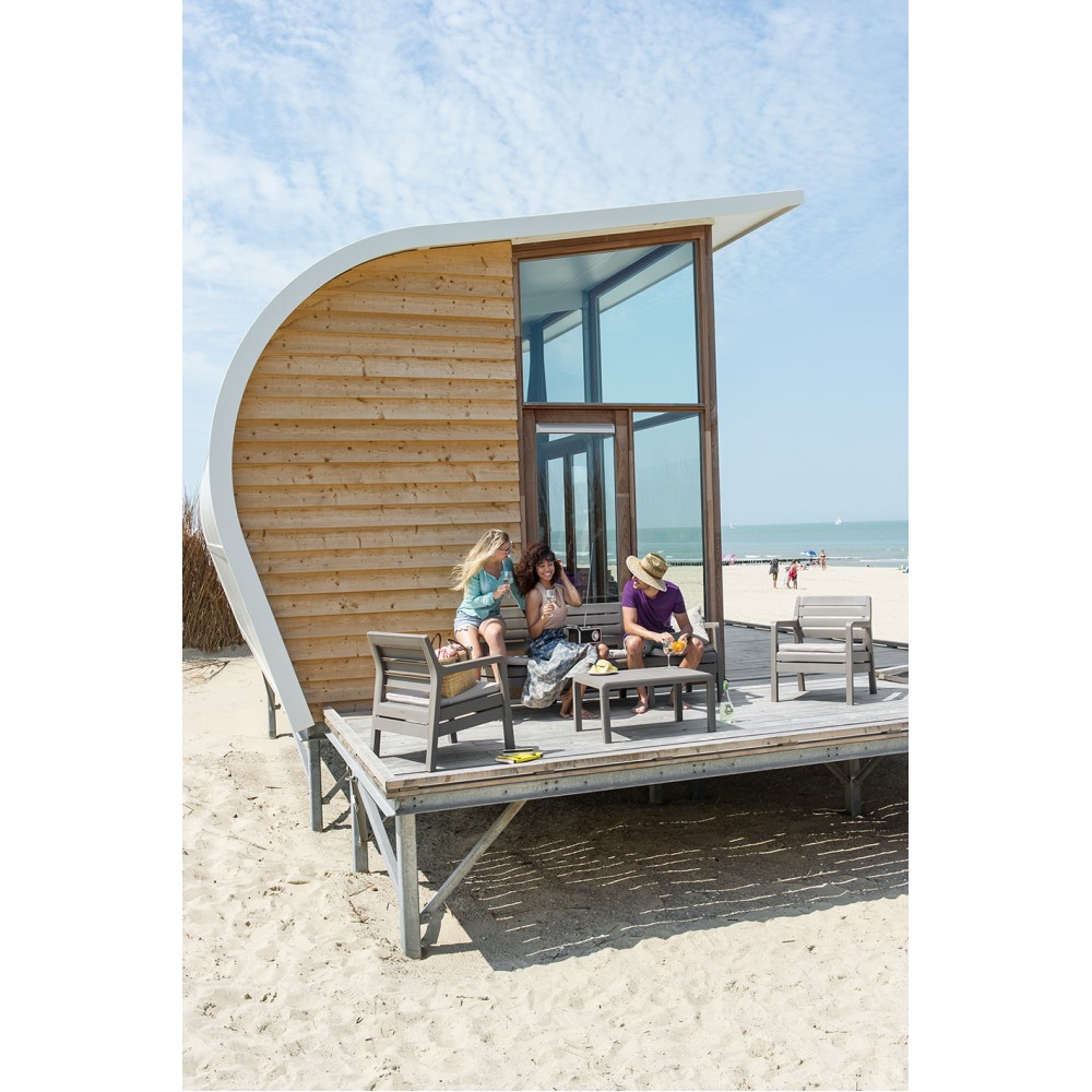 Delano - набор мебели с фактурой, напоминающей деревянные панели. В состав гарнитура входят диван, два кресла с подлокотниками и прямоугольный столик. Идеально подходит для использования на домашних балконах, террасах или в саду. Легко собирается и чистится. Стойкий к воздействию погодных условий и УФ-излучения. Набор предлагается в классической гамме цветов. Сборку (монтаж) пластиковой продукции рекомендовано производить при температуре воздуха выше 5 градусов тепла. (Пластик должен "согреться" - 2 часа отстояться в тёплом помещении перед сборкой, если продукция заносится с мороза). Преимущества: Эргономичный дизайн. Подушки в комплекте. Простая сборка без инструмента. Изготовлен из прочного пластика. Неметаллическая рама - не ржавеет и не гниет. Благодаря стойкому к высоким температурам полипропилену, цвета не выгорают и не бледнеют.