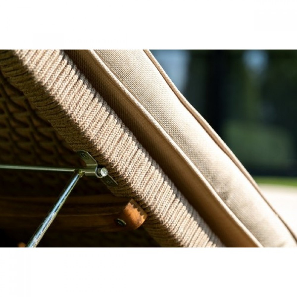 CALISTO – современная коллекция садовой мебели из акации, выполненная в комбинации натурального веревочного плетения rope, массива акации и бежевых подушек.