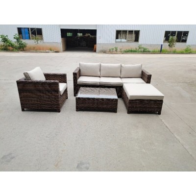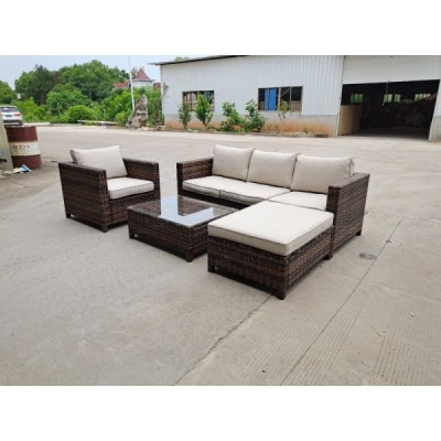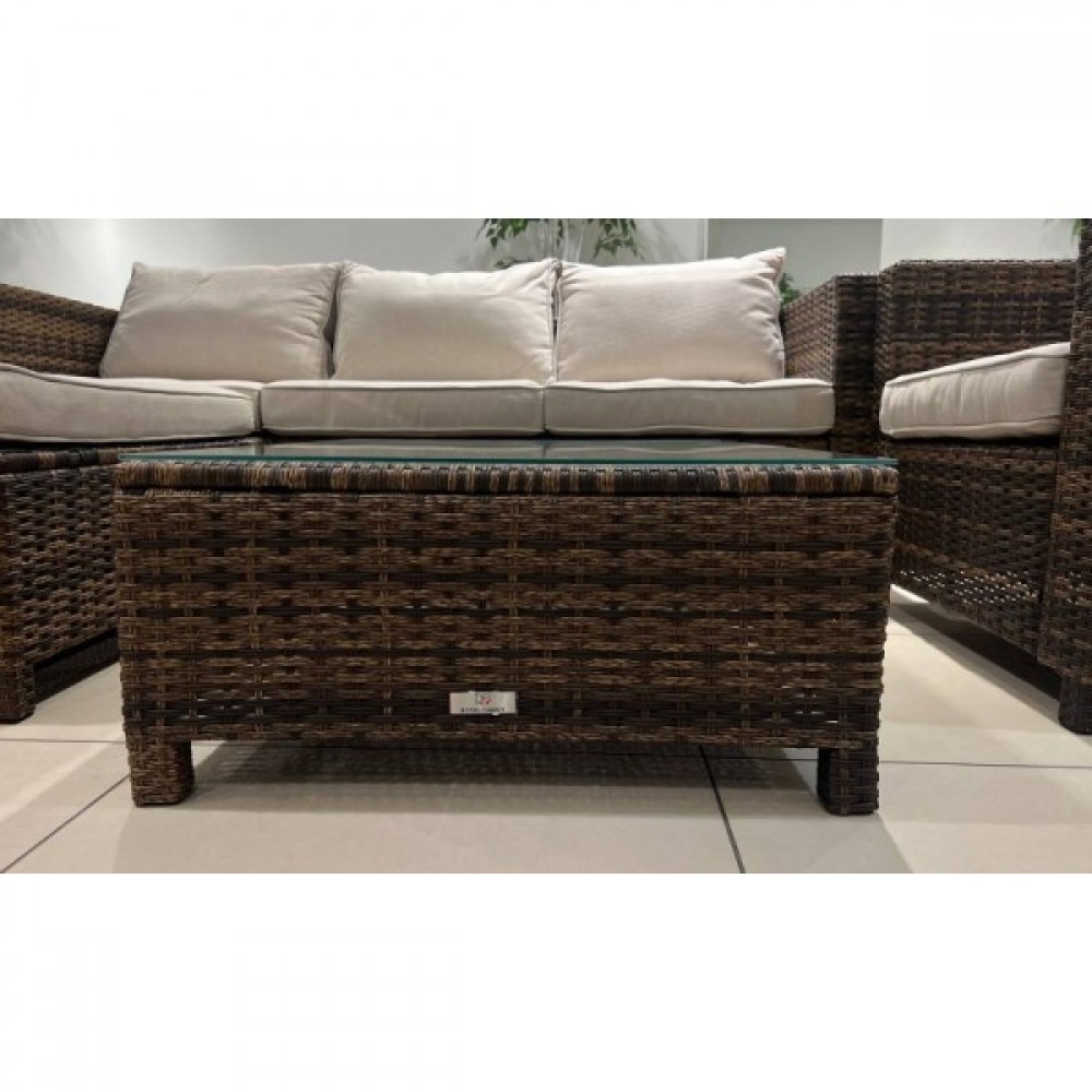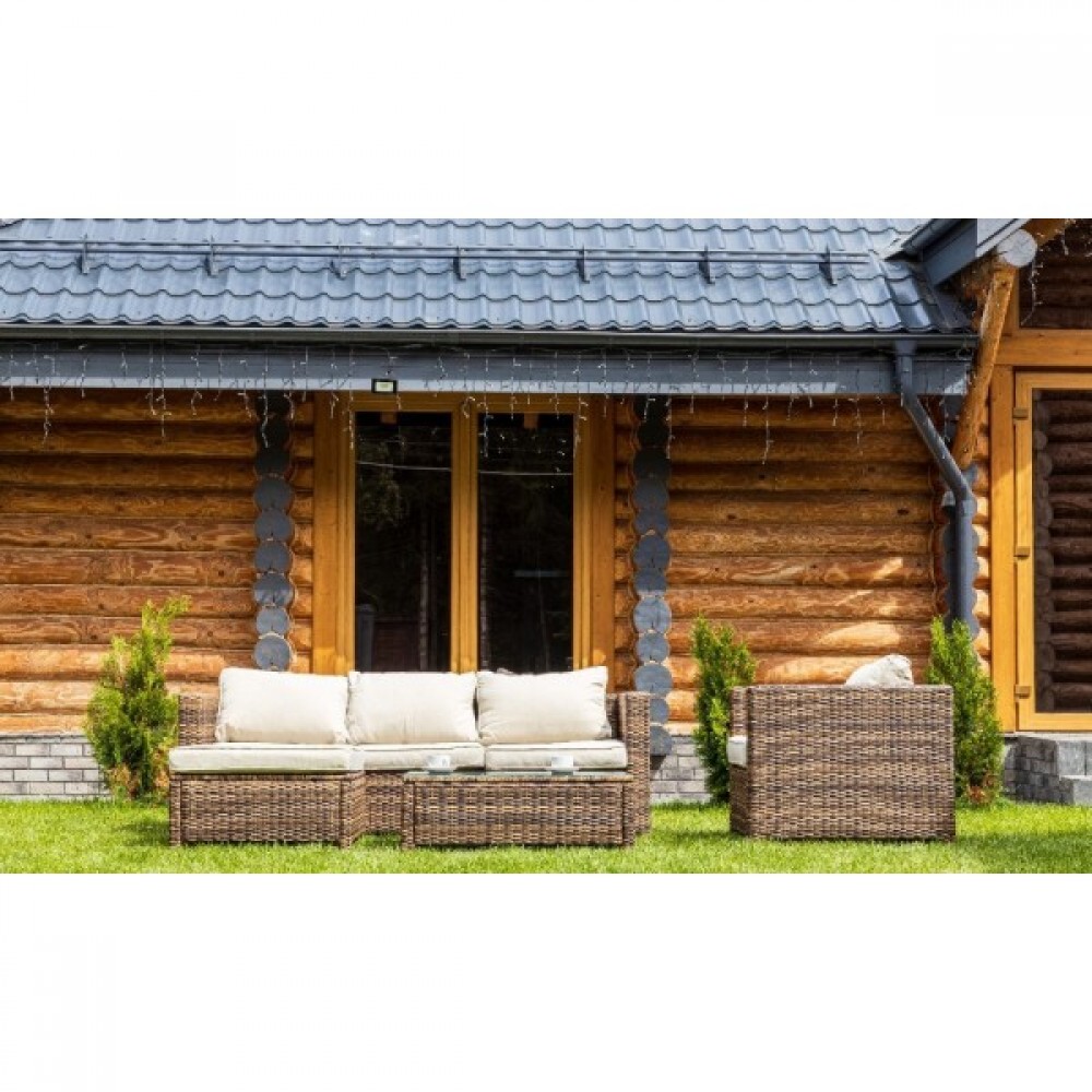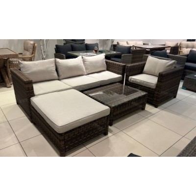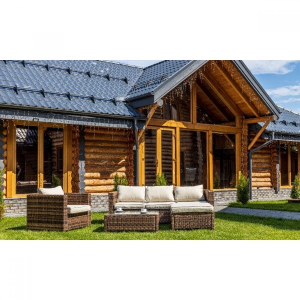 Угловой комплект уличной мебели GRAND VICKY из техноротанга выполнен в современном сдержанном дизайне с использованием натуральных коричневых оттенков. Благодаря компактным габаритам набор можно установить не только на территории приусадебного участка, но и на небольшой придомовой террасе.