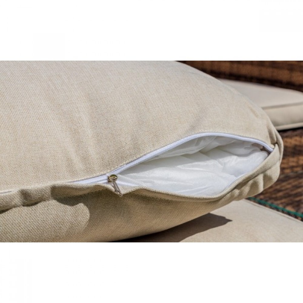 Мебель укомплектована мягкими подушками со съемными чехлами из водоотталкивающей ткани.