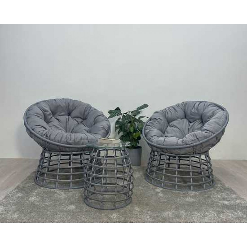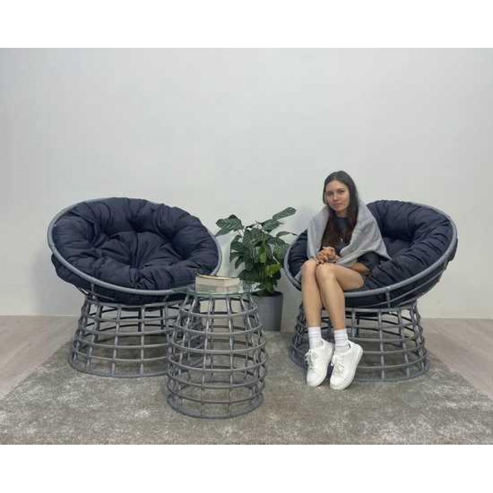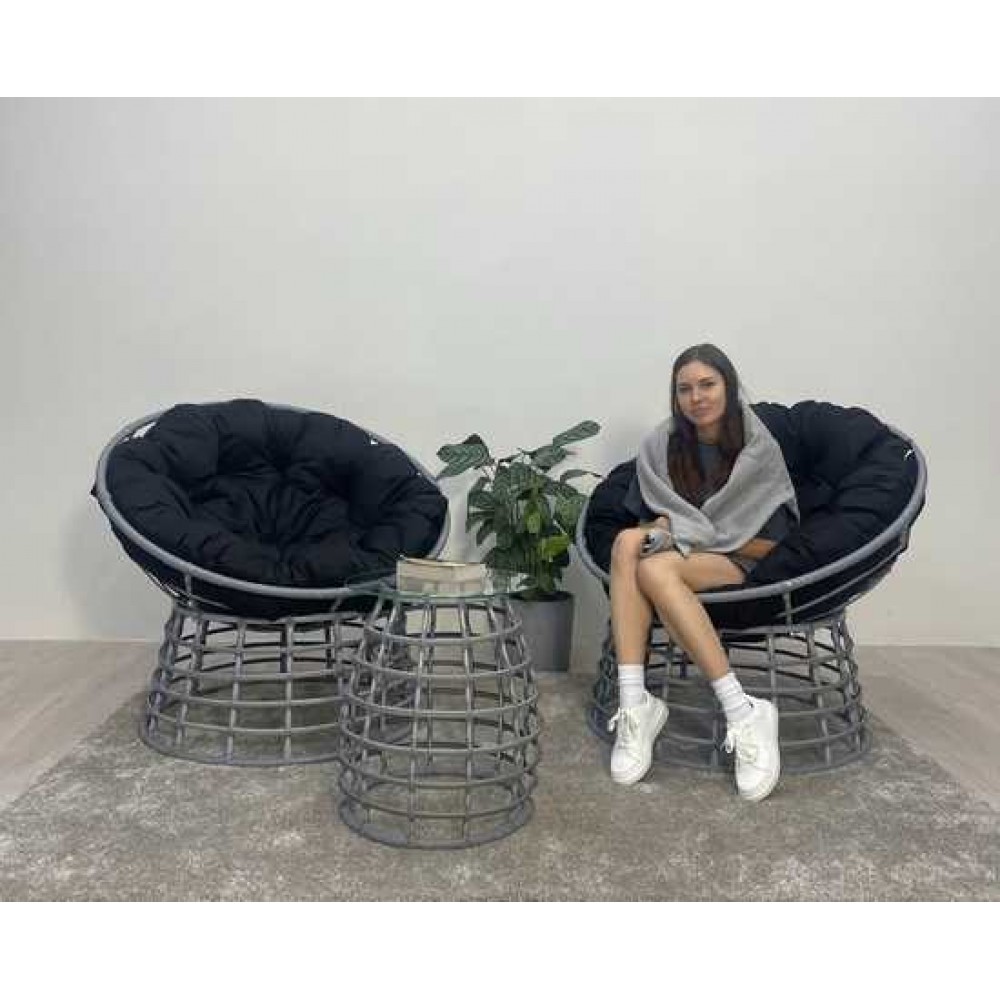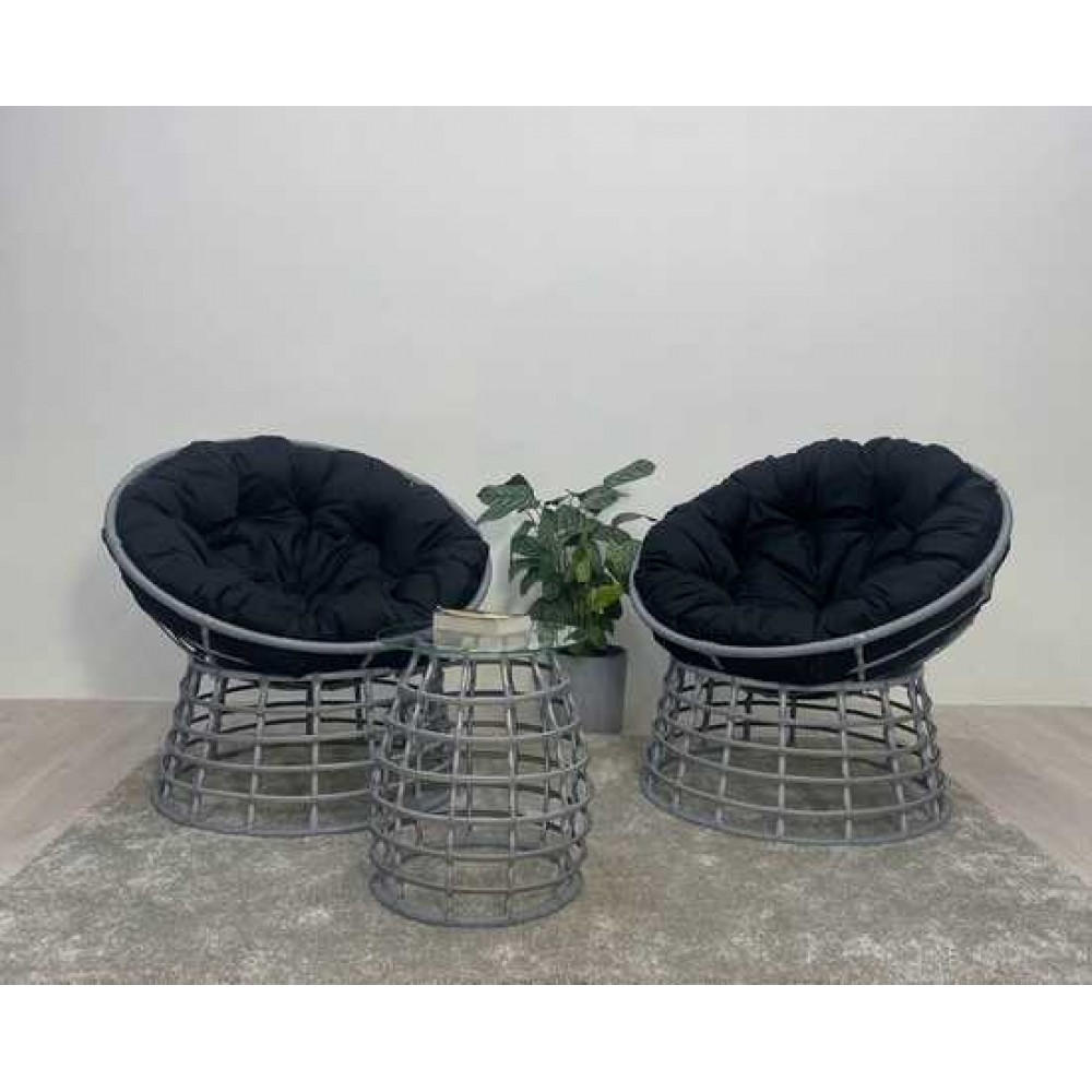 Комплект кофейный со столиком из искусственного ротанга, состоящие из двух кресел, двух подушек и столика украсит любую террасу загородного дома, садовую беседку дачного участка, квартиру, а также интерьер кафе и ресторанов.