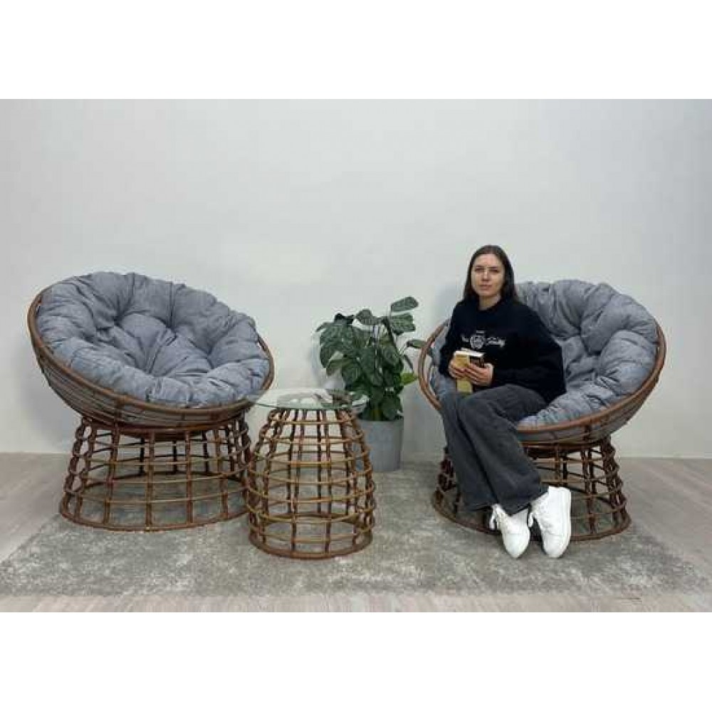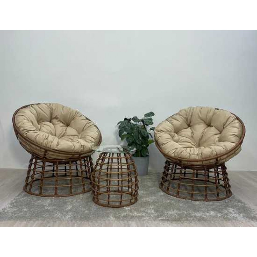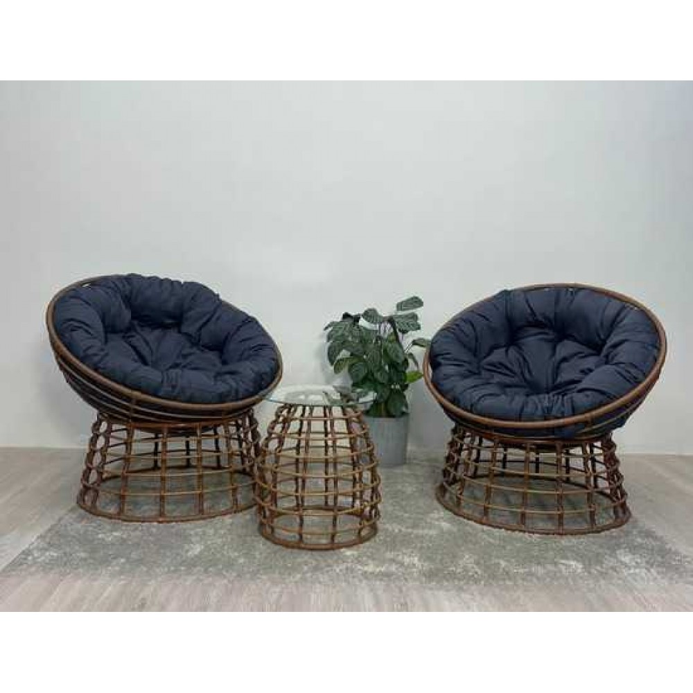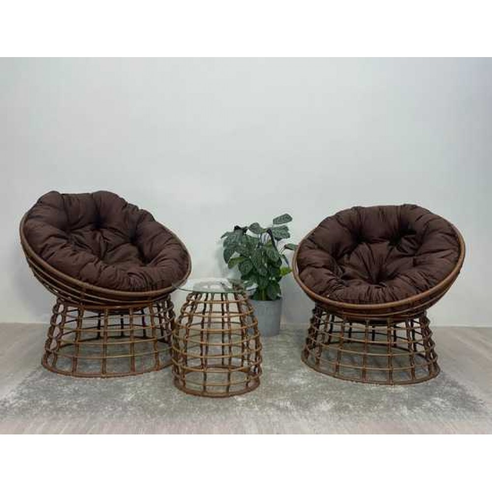 Комплект кофейный со столиком из искусственного ротанга, состоящие из двух кресел, двух подушек и столика украсит любую террасу загородного дома, садовую беседку дачного участка, квартиру, а также интерьер кафе и ресторанов.