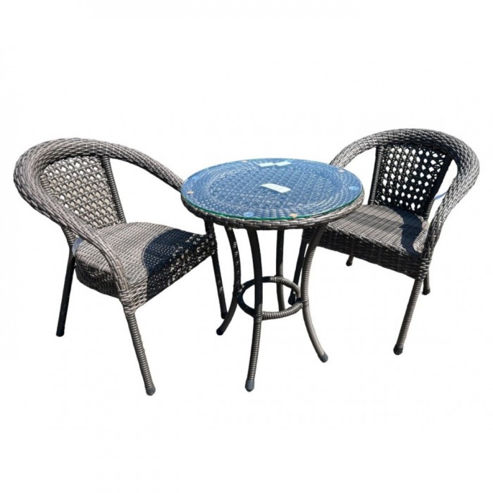 Комплект плетеной мебели из искусственного ротанга на 2 персоны. Не боится влаги, прямых солнечных лучей, мороза. Не требует особого ухода. Легко моется. Рекомендованная температура эксплуатации -16/+50. Нить плоская. В комплекте: стол д. 60 см, 2 кресла. Подушки можно приобрести отдельно. Столешница - каленое стекло 6 мм. Гарантия 2 года! Прекрасно подходит для веранды, террасы или небольшой кухни. Оптимальные размеры комплекта и полноценный обеденный стол совмещают в себе место для отдыха и для трапезы.