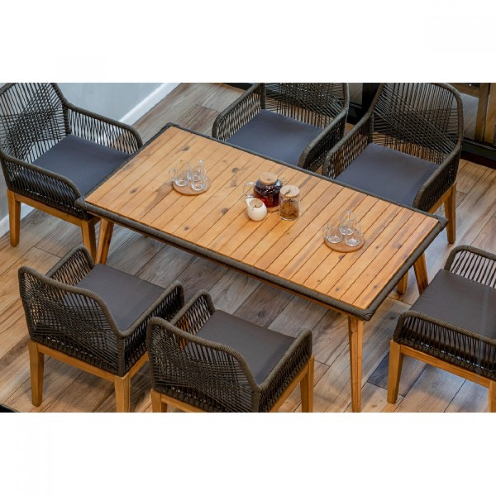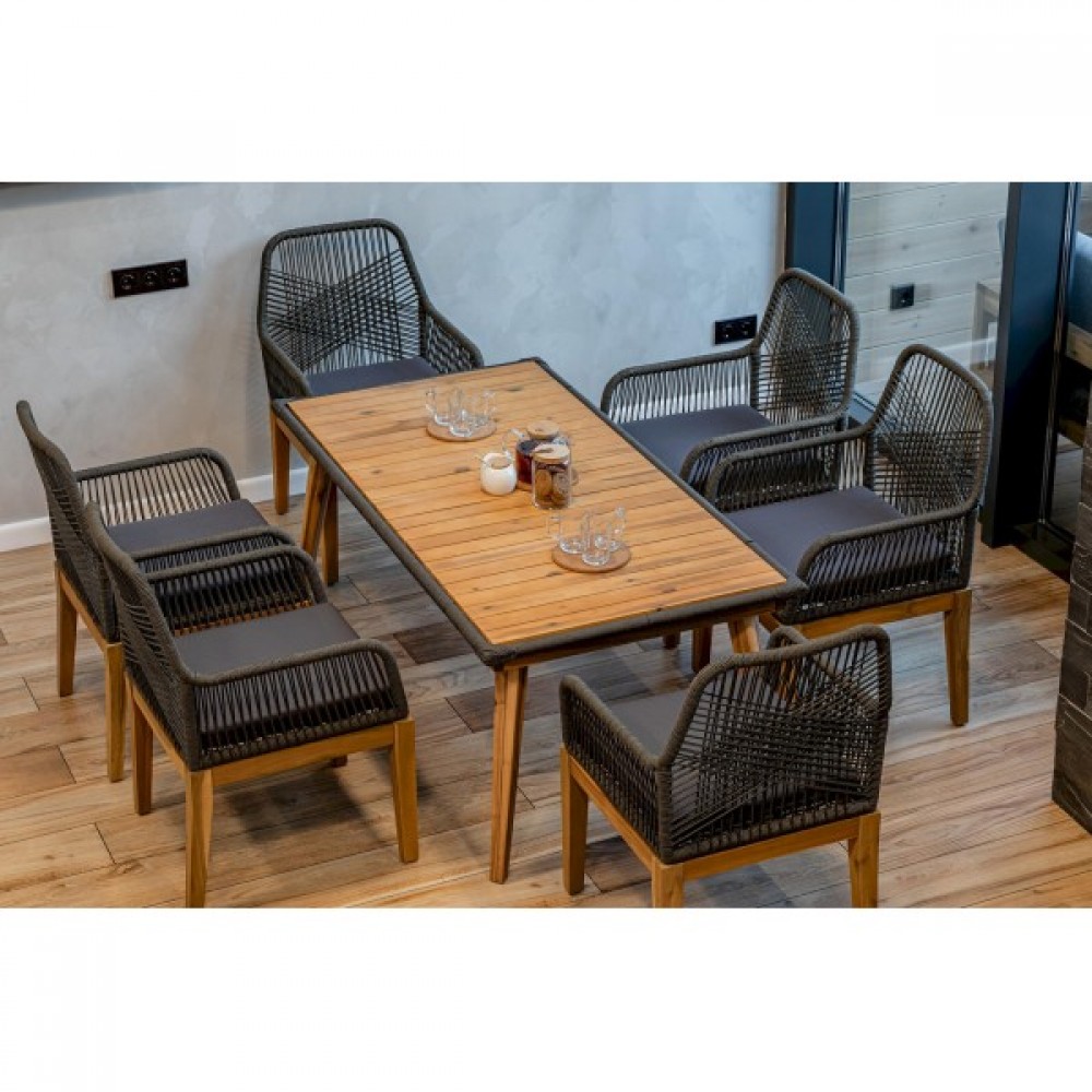 Выберите обеденный комплект из акации CHLOE в сером цвете и наслаждайтесь комфортом и красотой вашего уличного интерьера!