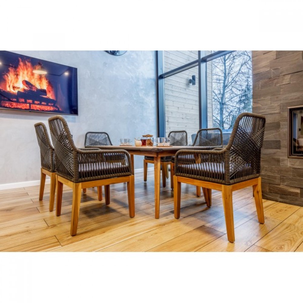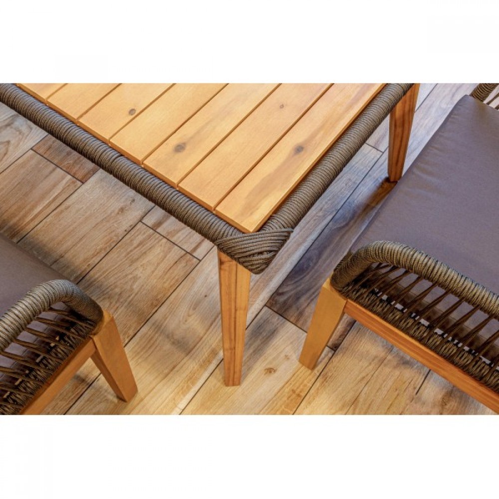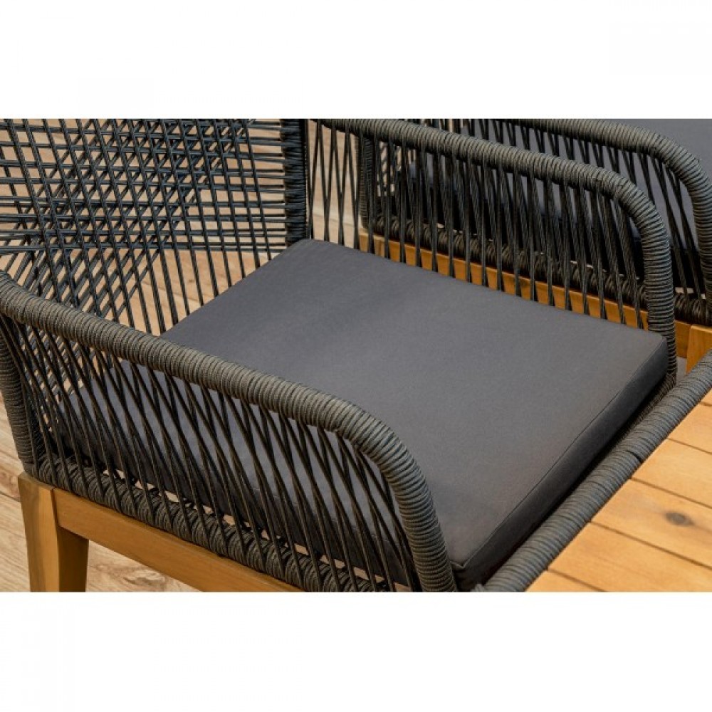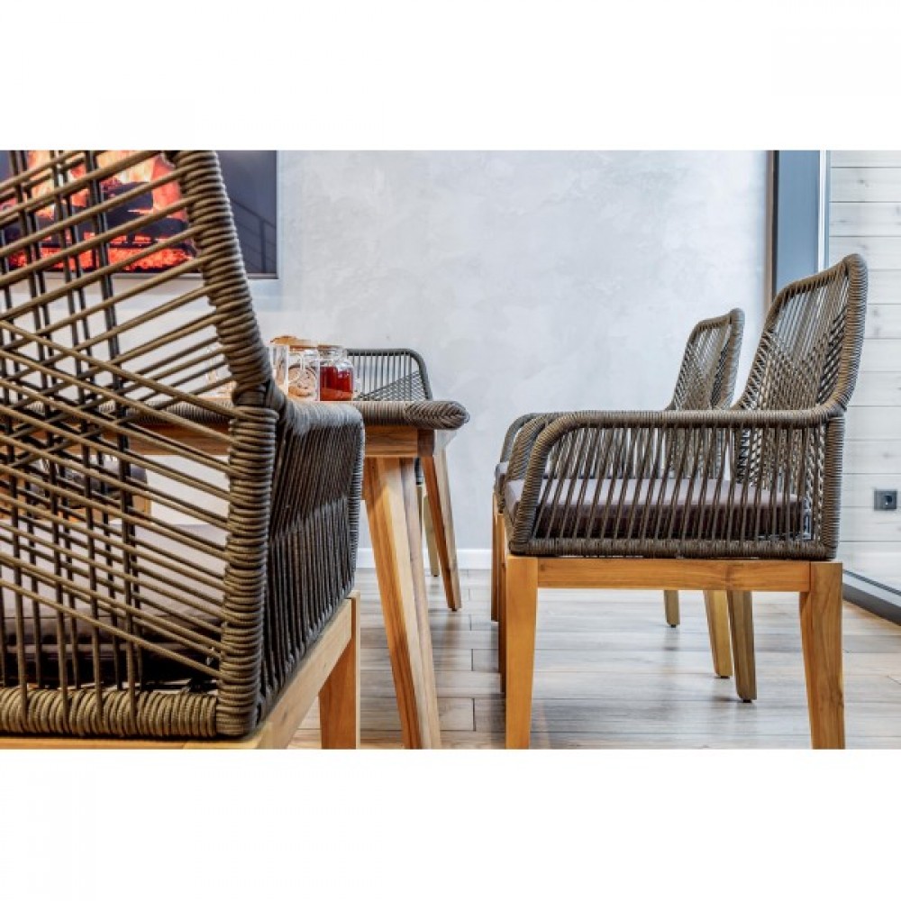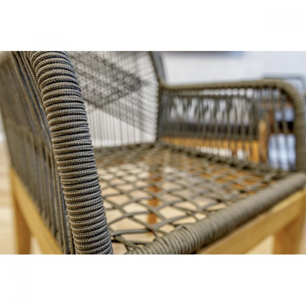 Обивка кресел выполнена из уличной веревки серого цвета, которая не только придает мебели элегантный вид, но и обладает устойчивостью к различным погодным условиям. Роуп не выцветает под воздействием солнца, что гарантирует сохранение первоначального вида мебели на протяжении долгого времени.