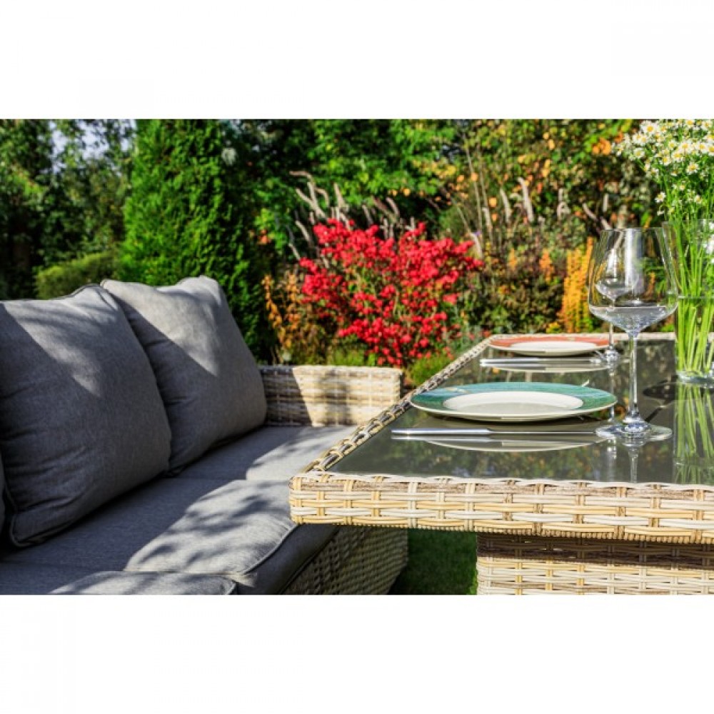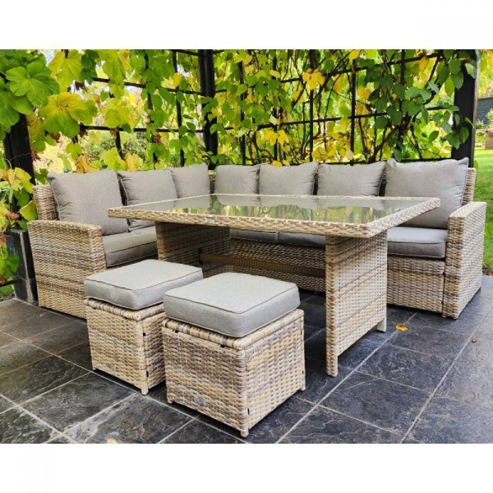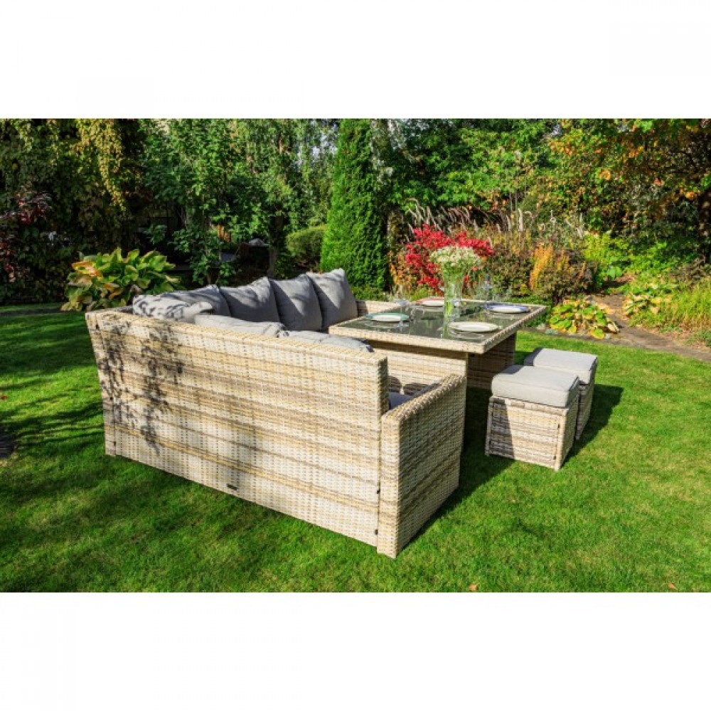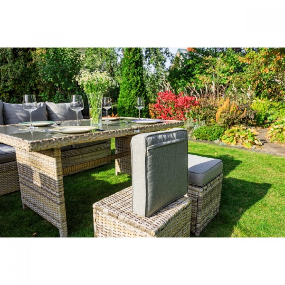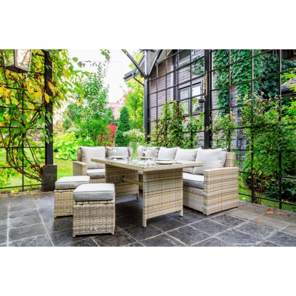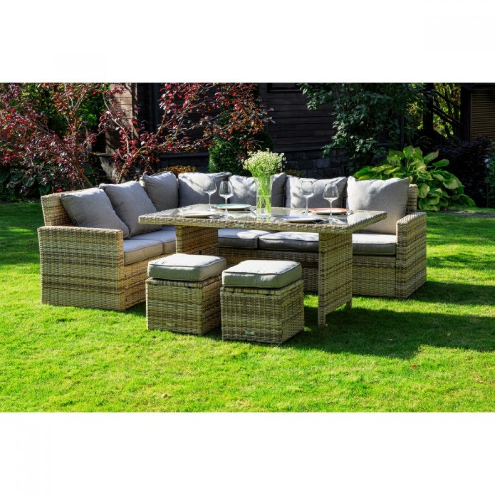 Создайте уютный и стильный уголок отдыха с угловым комплектом садовой мебели ZORRO, выполненным из искусственного ротанга в бежевом цвете. Этот набор станет идеальным решением для тех, кто предпочитает наслаждаться летними днями в тени приусадебного сада или на придомовой террасе. Он включает все необходимое для комфортного отдыха самой большой семьи.