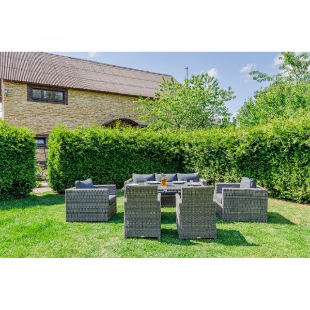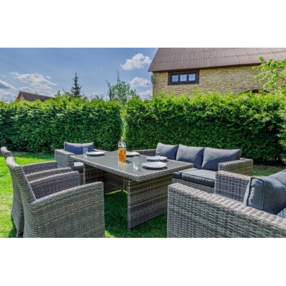 Комплект мебели KARL PLUS в сером цвете является практичным и стильным выбором для вашего дома. Он прекрасно подойдет для проведения ужинов с семьей и друзьями, создавая уютную и комфортную атмосферу.