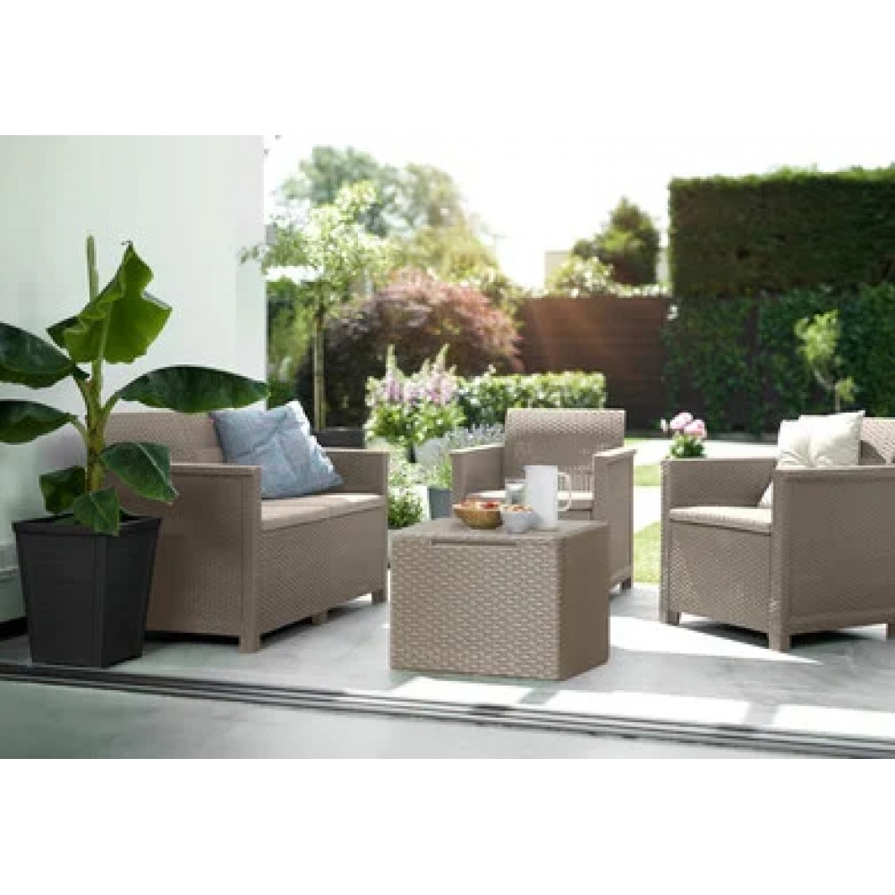 Обновите свое патио, балкон или дворик с удобным диваном Elodie производства Keter. Входящие в комплект подушки обеспечивают высокий уровень комфорта отдыха. Все гарнитуры для отдыха Elodie гарантируют удобство, соответствующее нуждам любого пространства на свежем воздухе, без компромиссов в качестве. Мебель изготовлена из сбалансированных, не требующих ухода и устойчивых к неблагоприятным погодным условиям материалов. В комплекте двухместный диван, два кресла и столик.