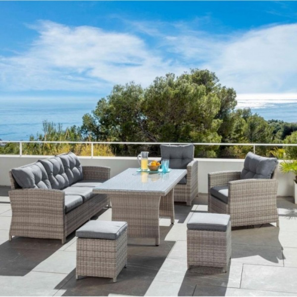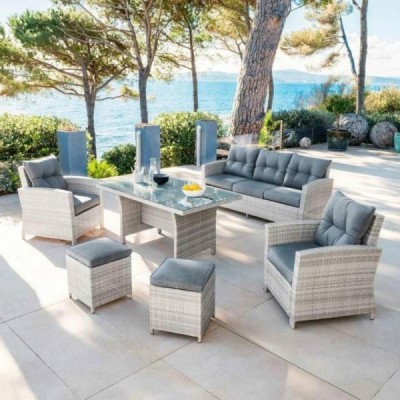 В составе комплекта: трехместный диван, стол со стеклом, 2 кресла и 2 пуфа. Высококачественная лоза из полиротанга серого цвета стойкая к любым атмосферным явлениям. Крепкий стальной каркас с полимерным антивандальным покрытием и отличным качеством сварки. Изделие сплетено вручную нашими мастерами под жестким контролем качества на каждом этапе производства. Лоза максимально приближена по рельефу и текстуре к естественному материалу. Идеально подходит для использования на улице и внутри помещения в любую погоду. Не боится воды, солнца и минусовой температуры.
