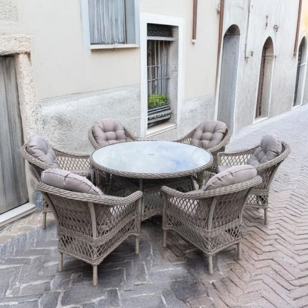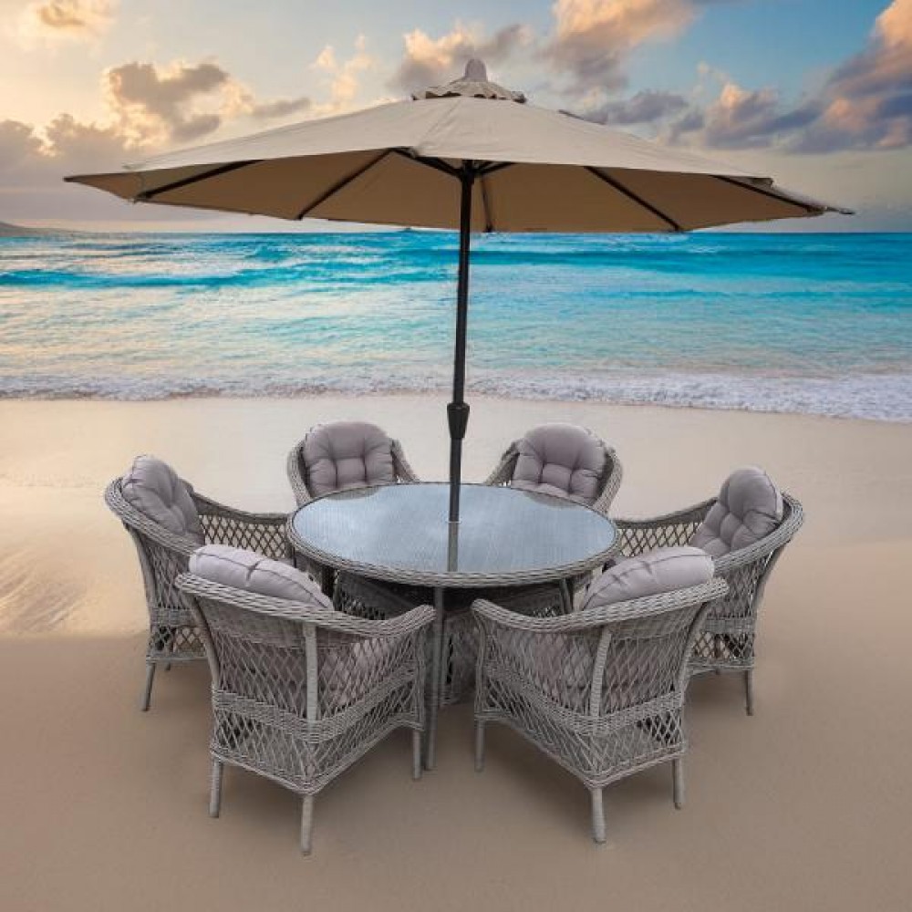 Комплект плетеной мебели T219/270-8k/LV-217 Beige (6+1) с зонтом в комплекте