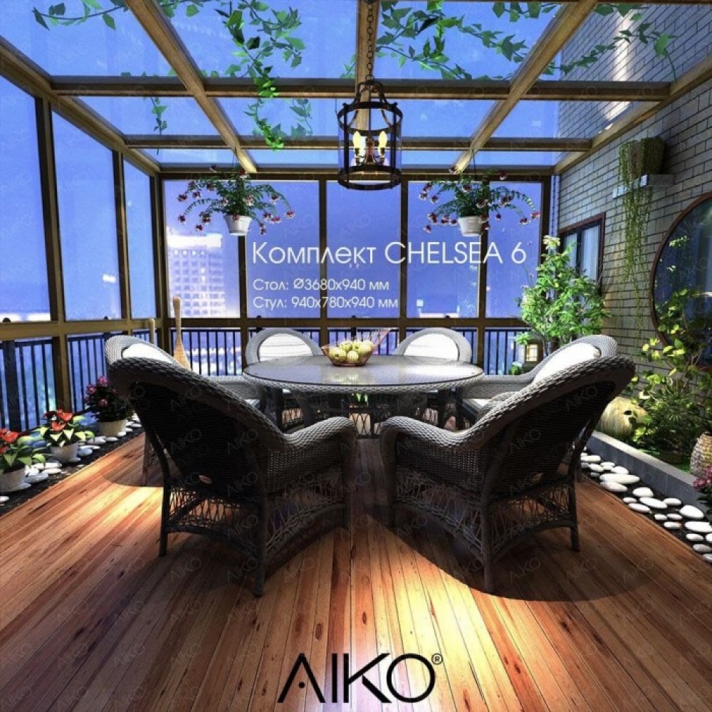 Не требует особого ухода. Легко моется. Рекомендованная температура эксплуатации -16/+50. Нить сфера. В комплекте : стол обеденный круглый д. 160 см, 6 кресел с подушками. Столешница - каленое стекло 8 мм. Гарантия 2 года!