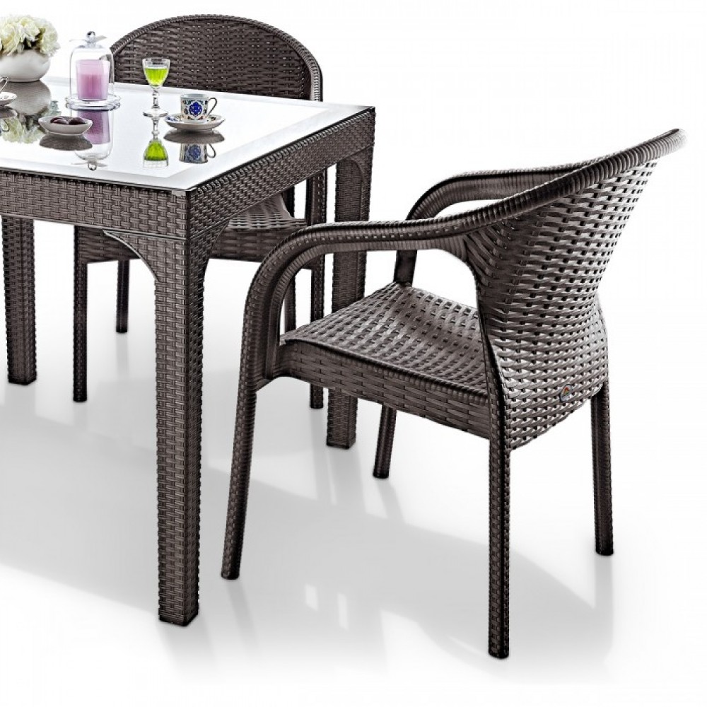 Благодаря текстурированной поверхности из ротанга, стол можно использовать, как со стеклом, так и без него.