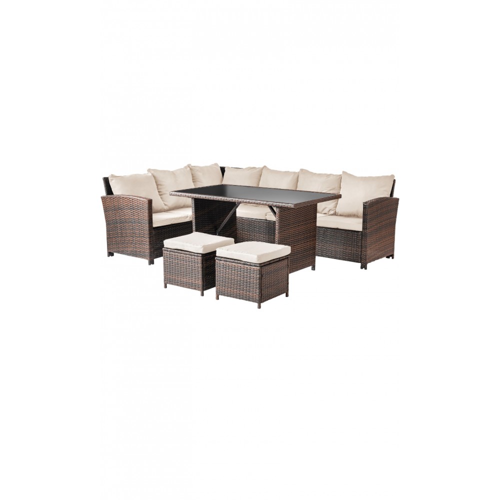 Комплект садовой мебели Sundays Santorini SFS 019 с серыми подушками представляет собой идеальное сочетание комфорта, стиля и функциональности для вашего дачного участка. В комплект входят: прямоугольный стол, два удобных пуфика и два дивана из высококачественного искусственного ротанга.