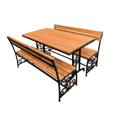 Скамья садовая и стол, входящие в состав набора представляют собой изящное сочетание металла и дерева.