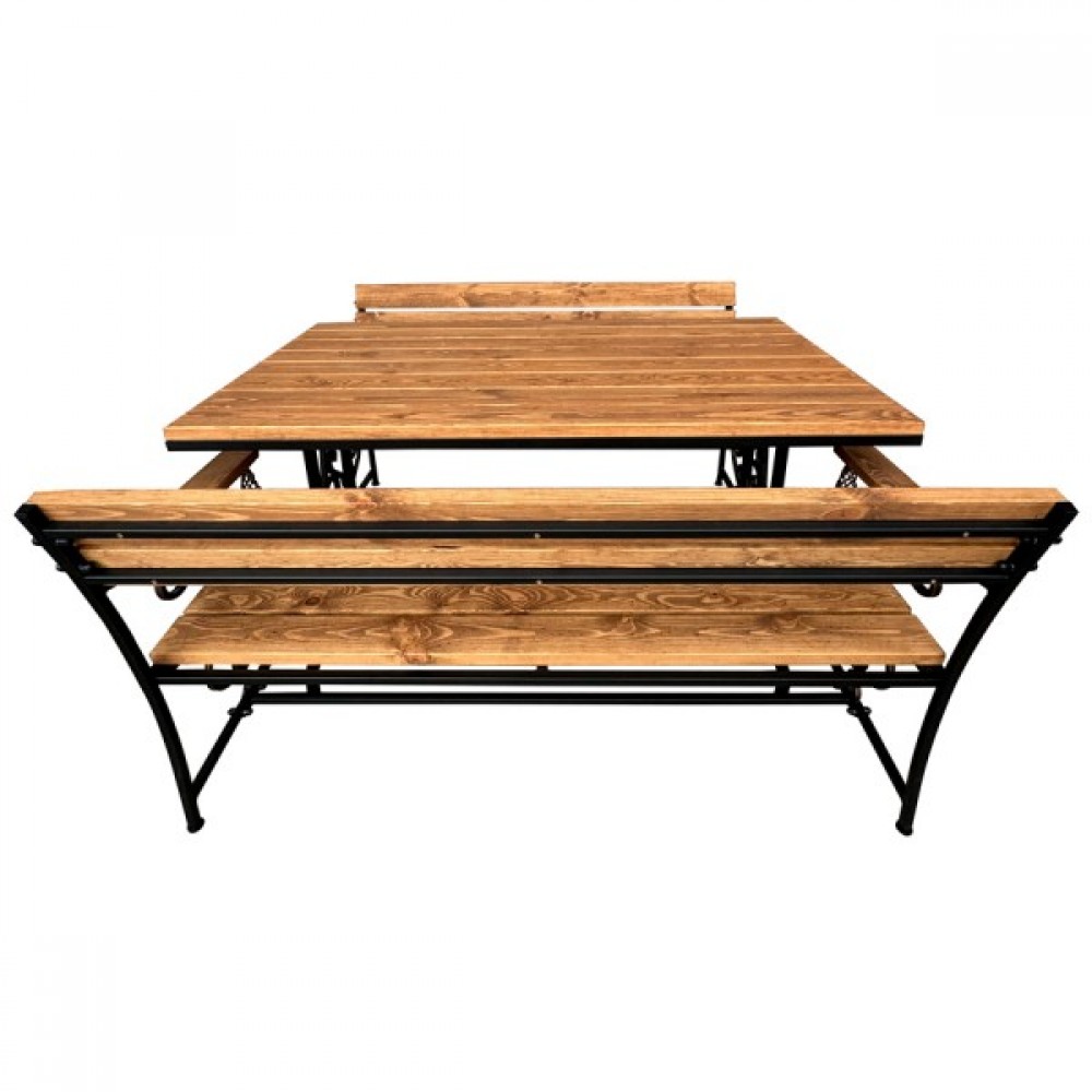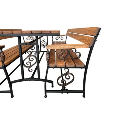Скамья садовая и стол, входящие в состав набора представляют собой изящное сочетание металла и дерева.