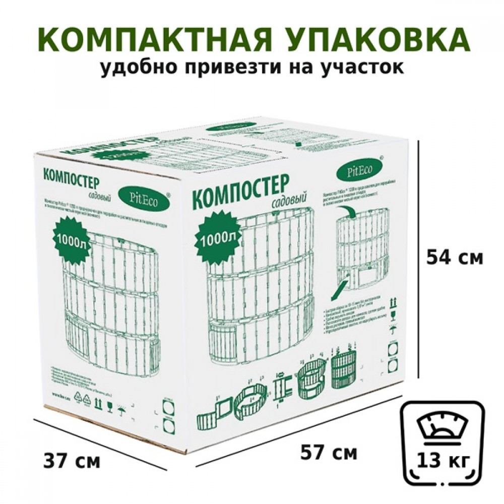 Компостер Piteco 1000 л предназначен для переработки растительных и пищевых отходов в экологически чистый перегной (компост).