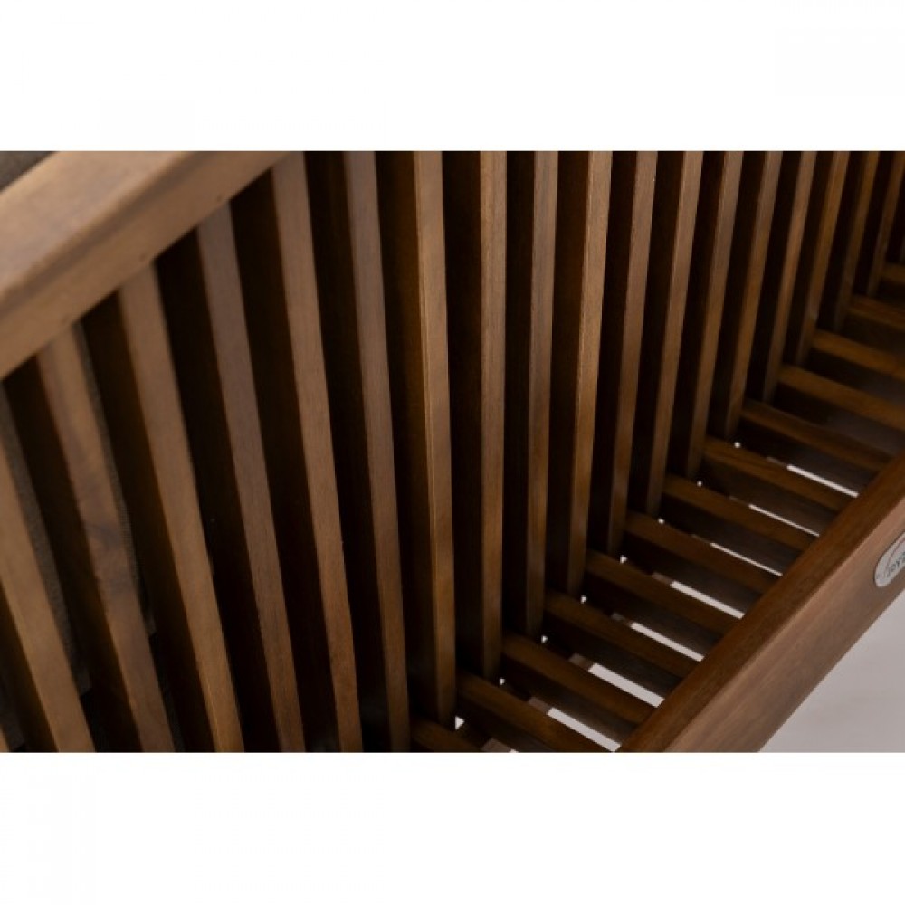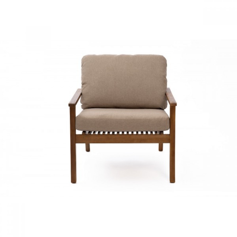 MONA – современная коллекция садовой мебели из акации в скандинавском стиле в комбинации массива акации и бежевых подушек.