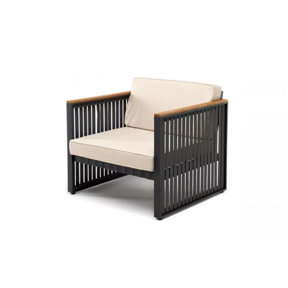 - Каркас мебели изготовлен из прочного алюминия с порошковым покрытием, защищающим его от погодных условий и коррозии. Цвет каркаса – темно-серый графит