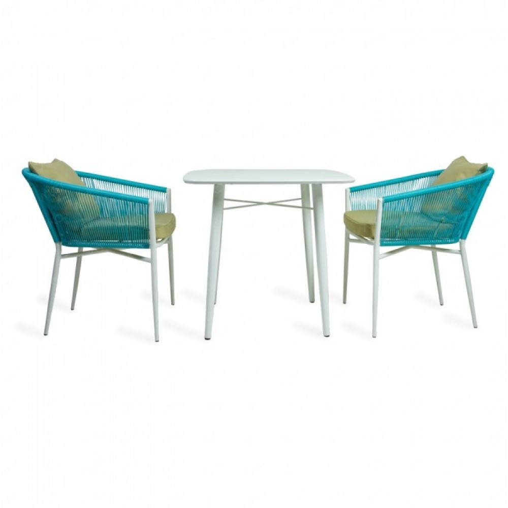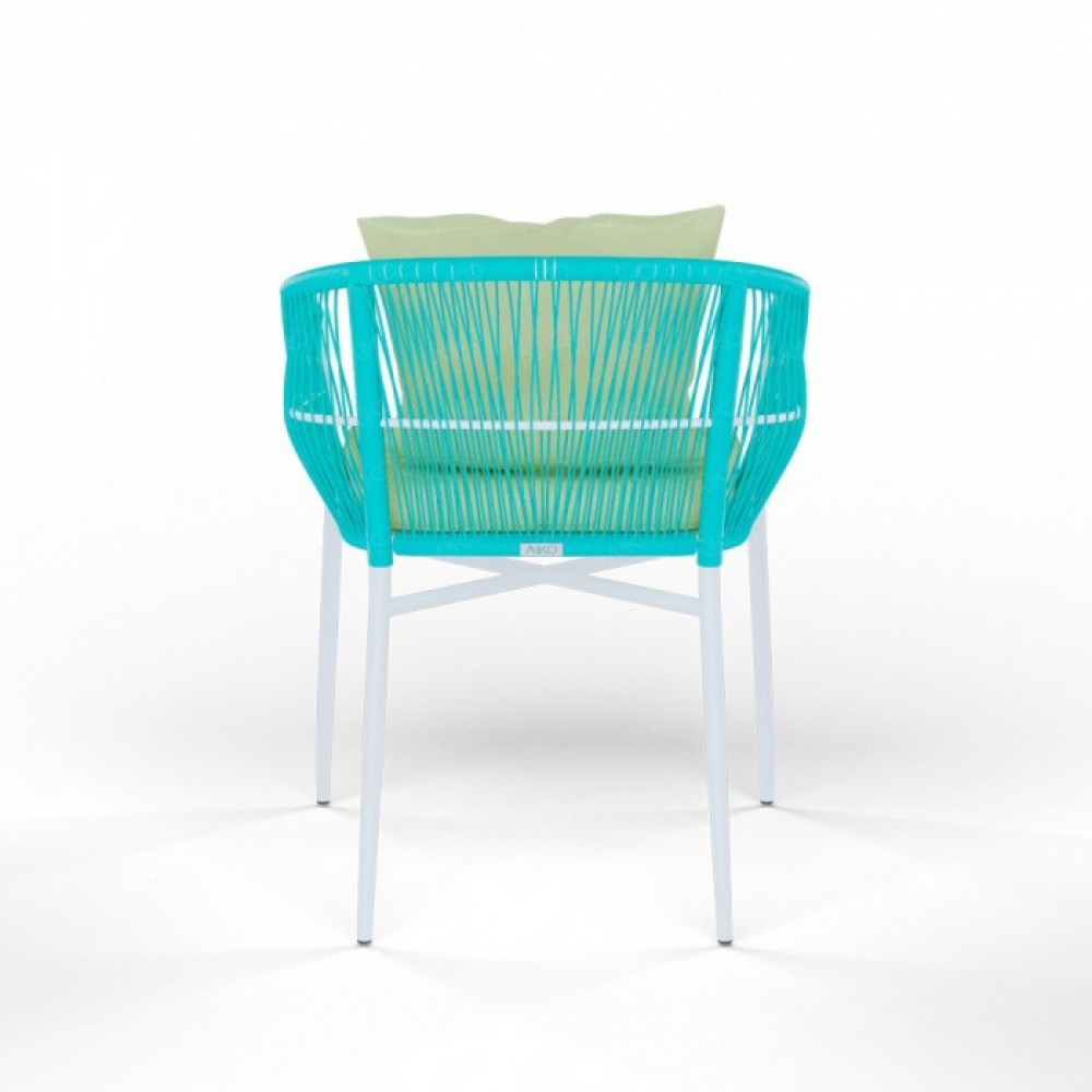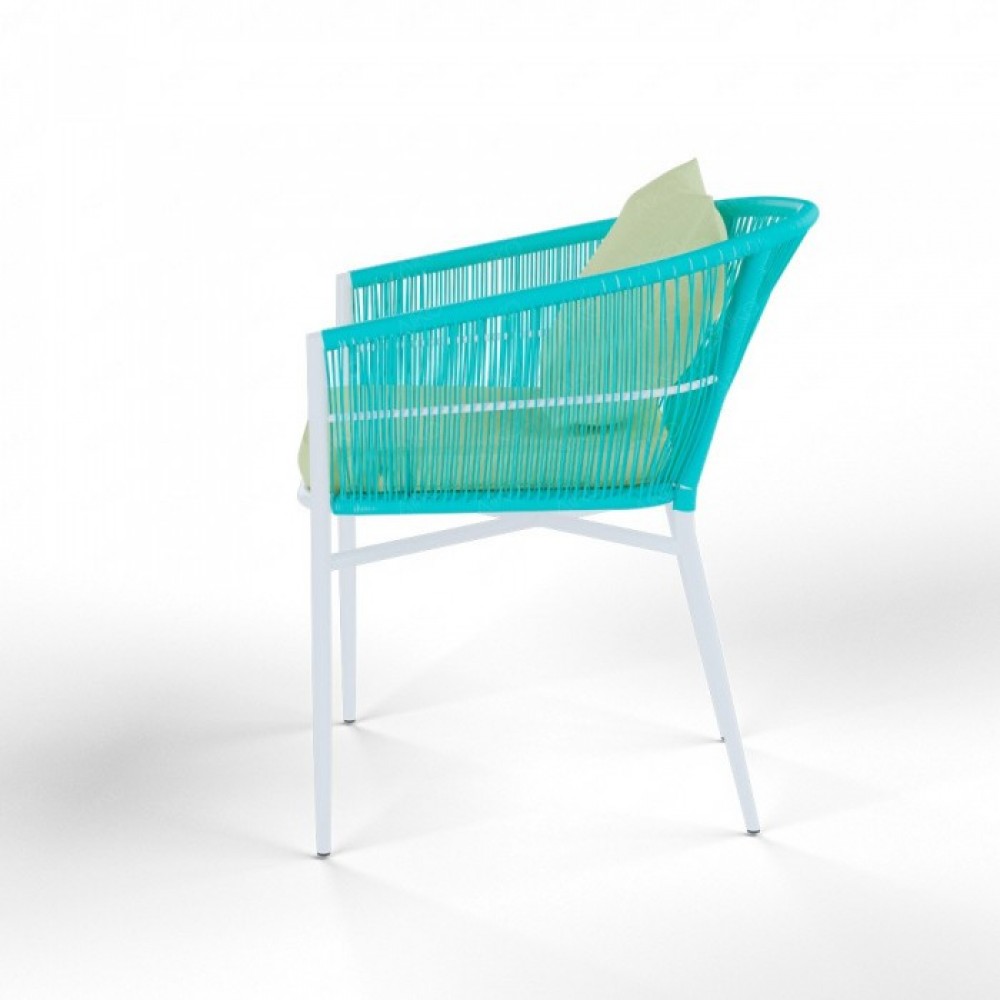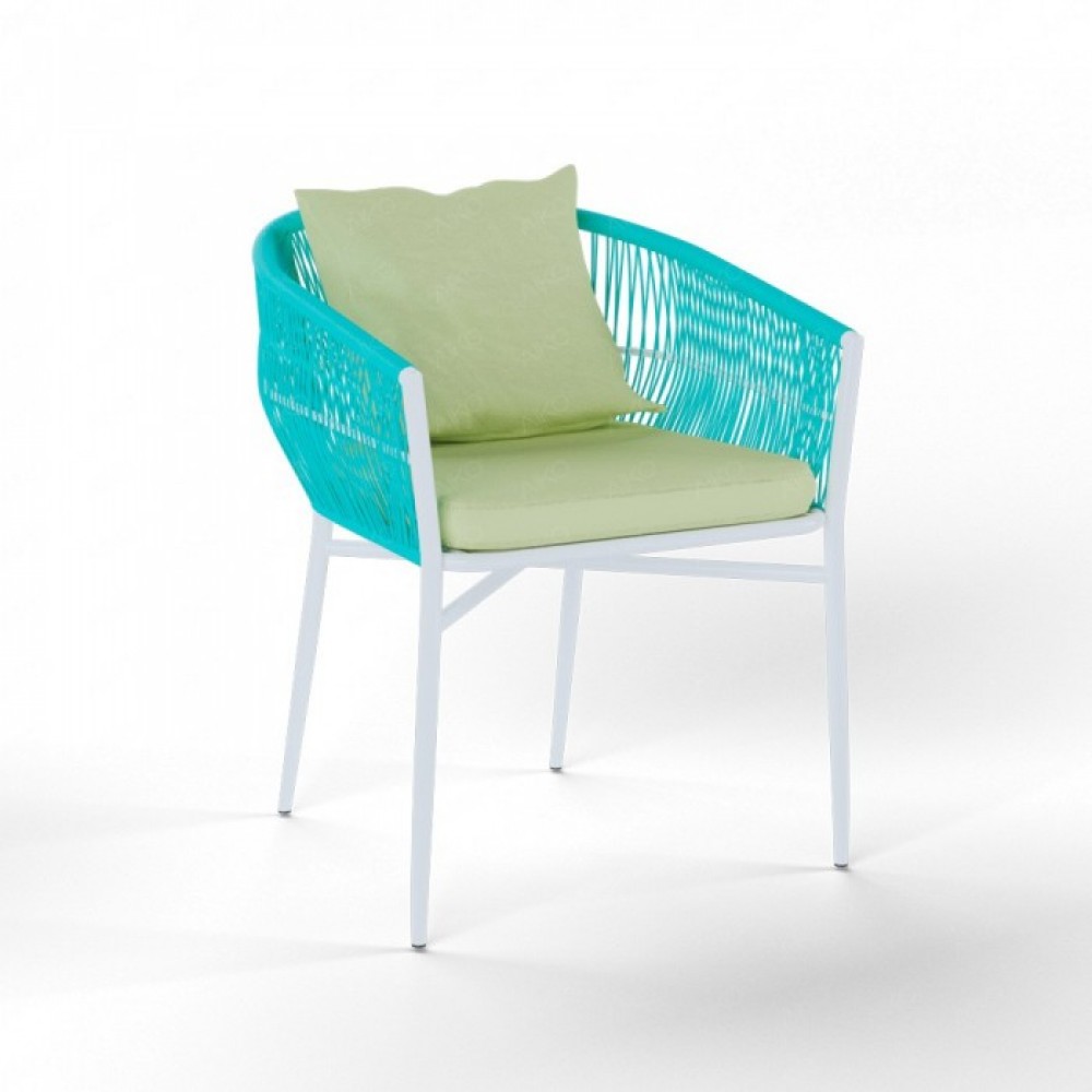 Плетеное кресло AIKO ZOE цвета Tiffany на белом металлическом каркасе - стиль и комфорт вашего интерьера.