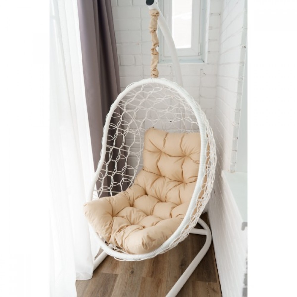 Кресло-кокон Риторика Овалис белое с бежевой подушкой