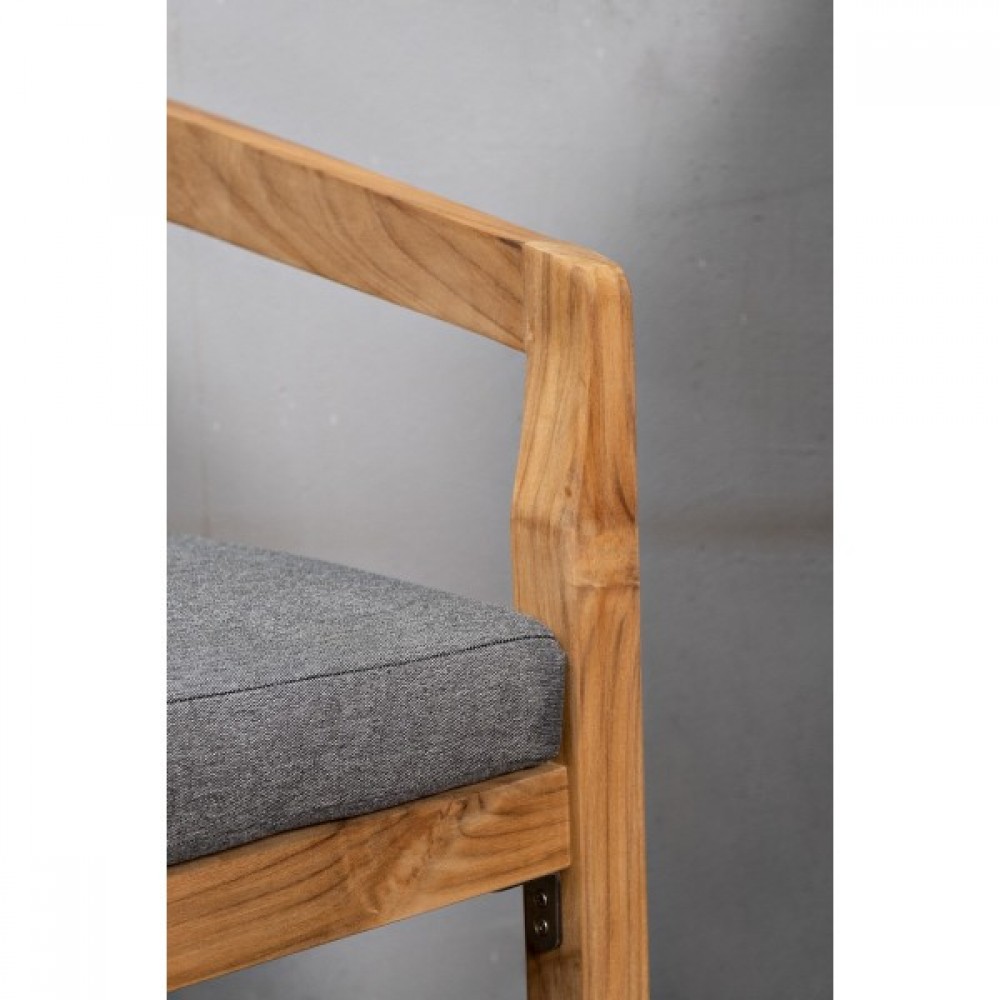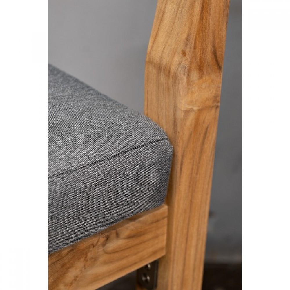 Эффектное сочетание натуральной фактуры массива тика и стильных светло-серых подушек.
