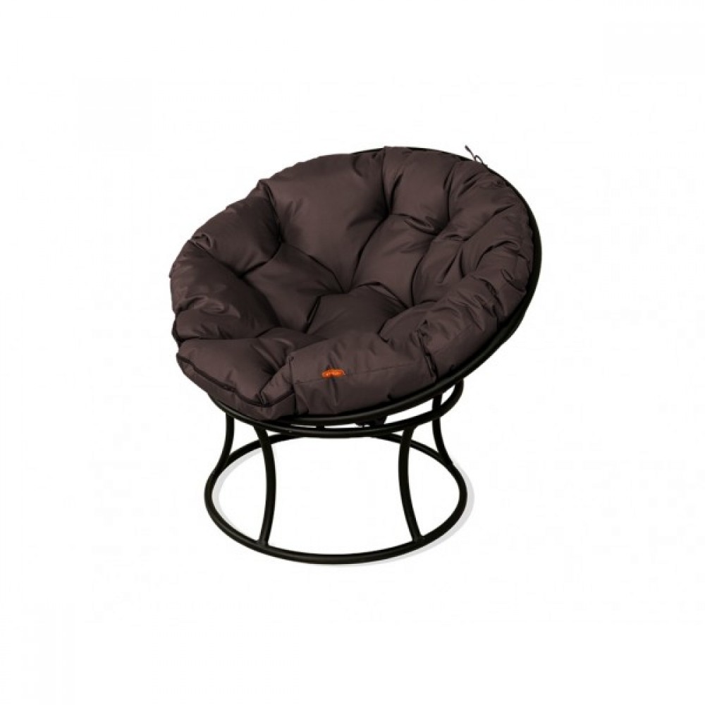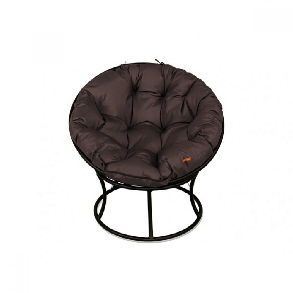 Кресло Риторика Папасан черное без ротанга с коричневой подушкой