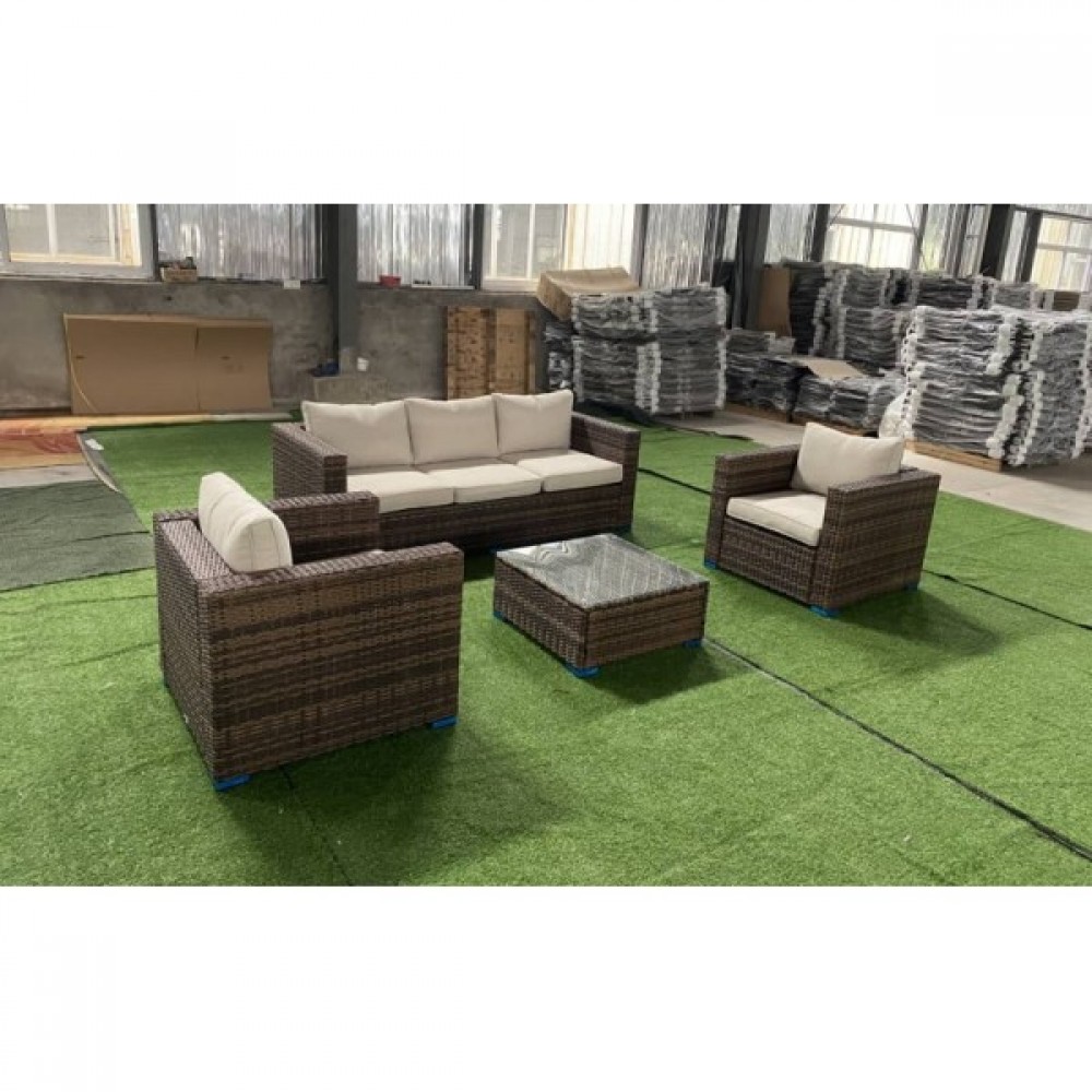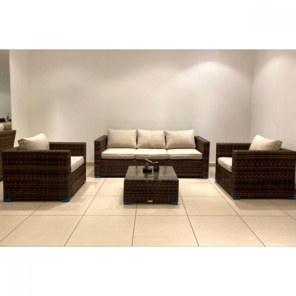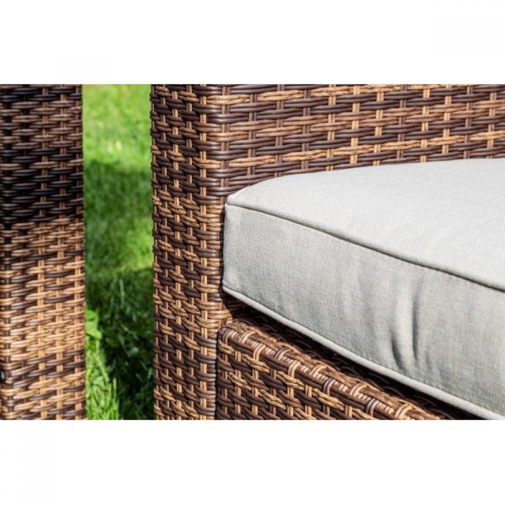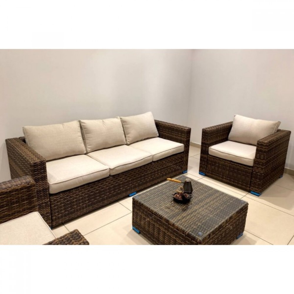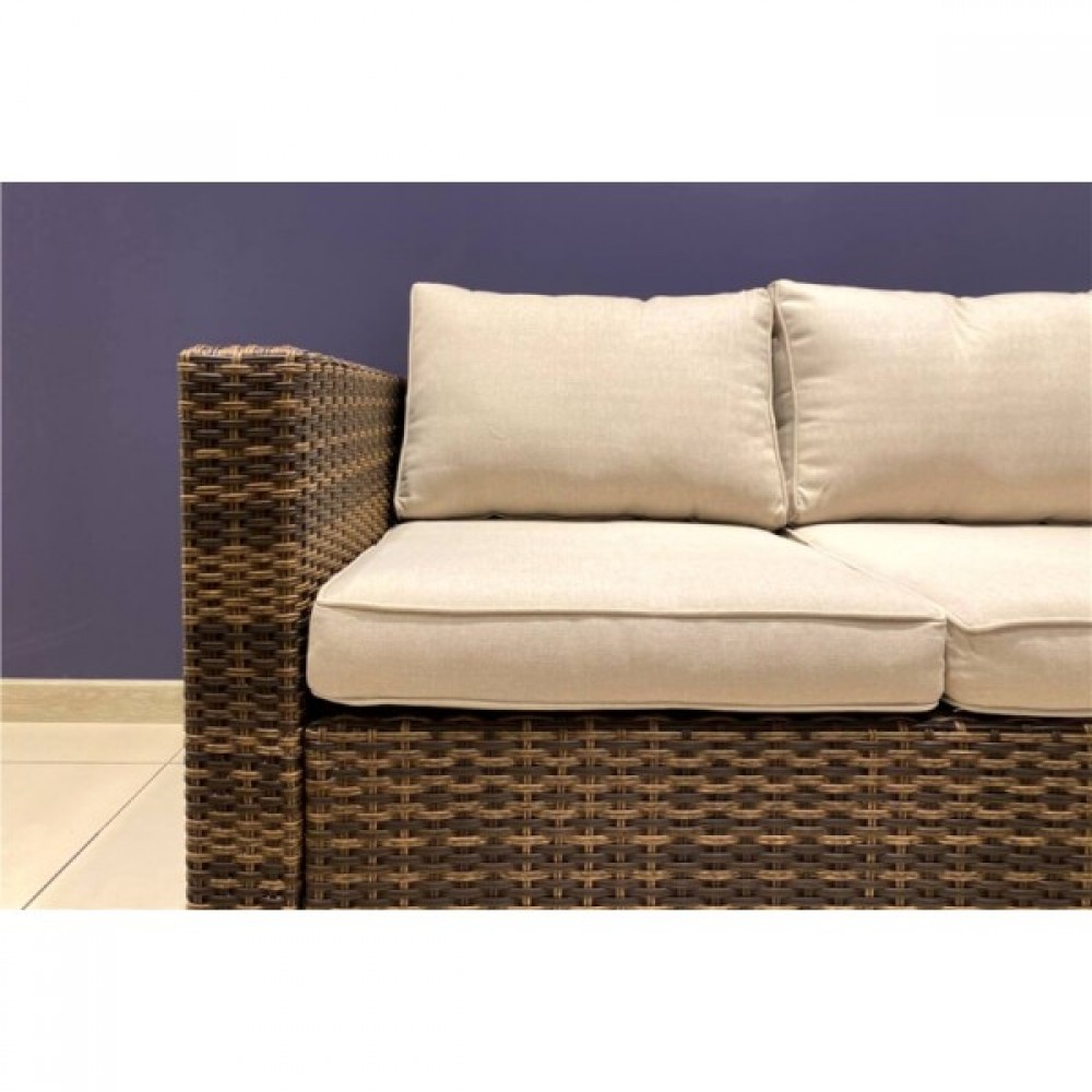 Лаунж-зона KARL коричневая сочетает в себе комфортабельность, вместимость и стиль. Мебель выполнена из искусственного ротанга ручного плетения, имеет прочный стальной каркас.