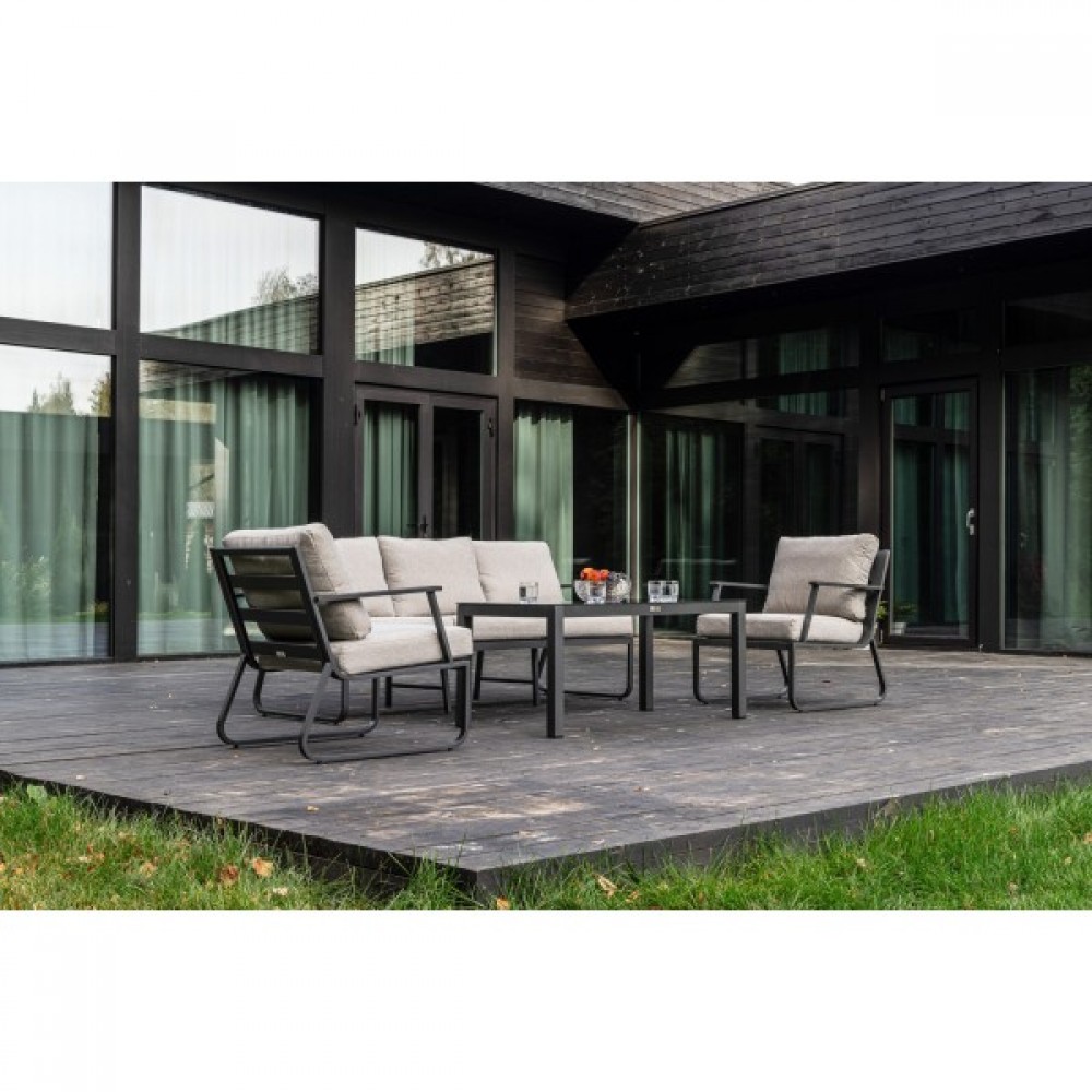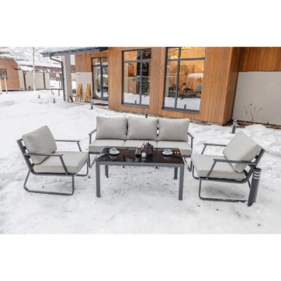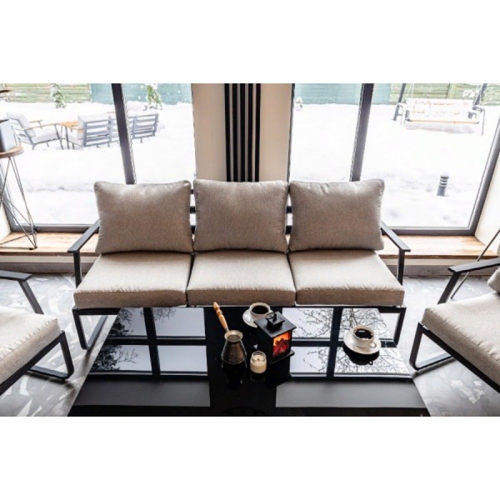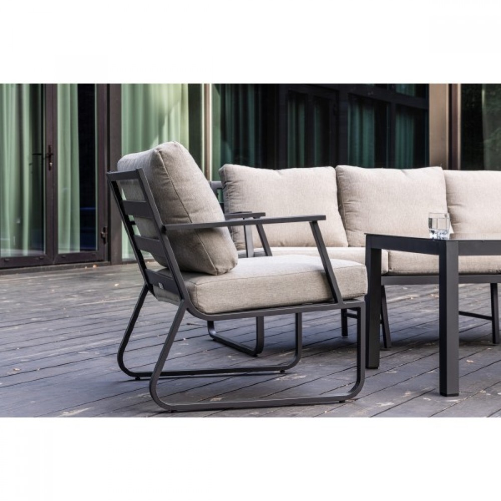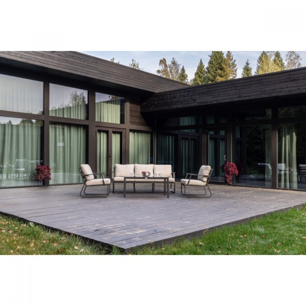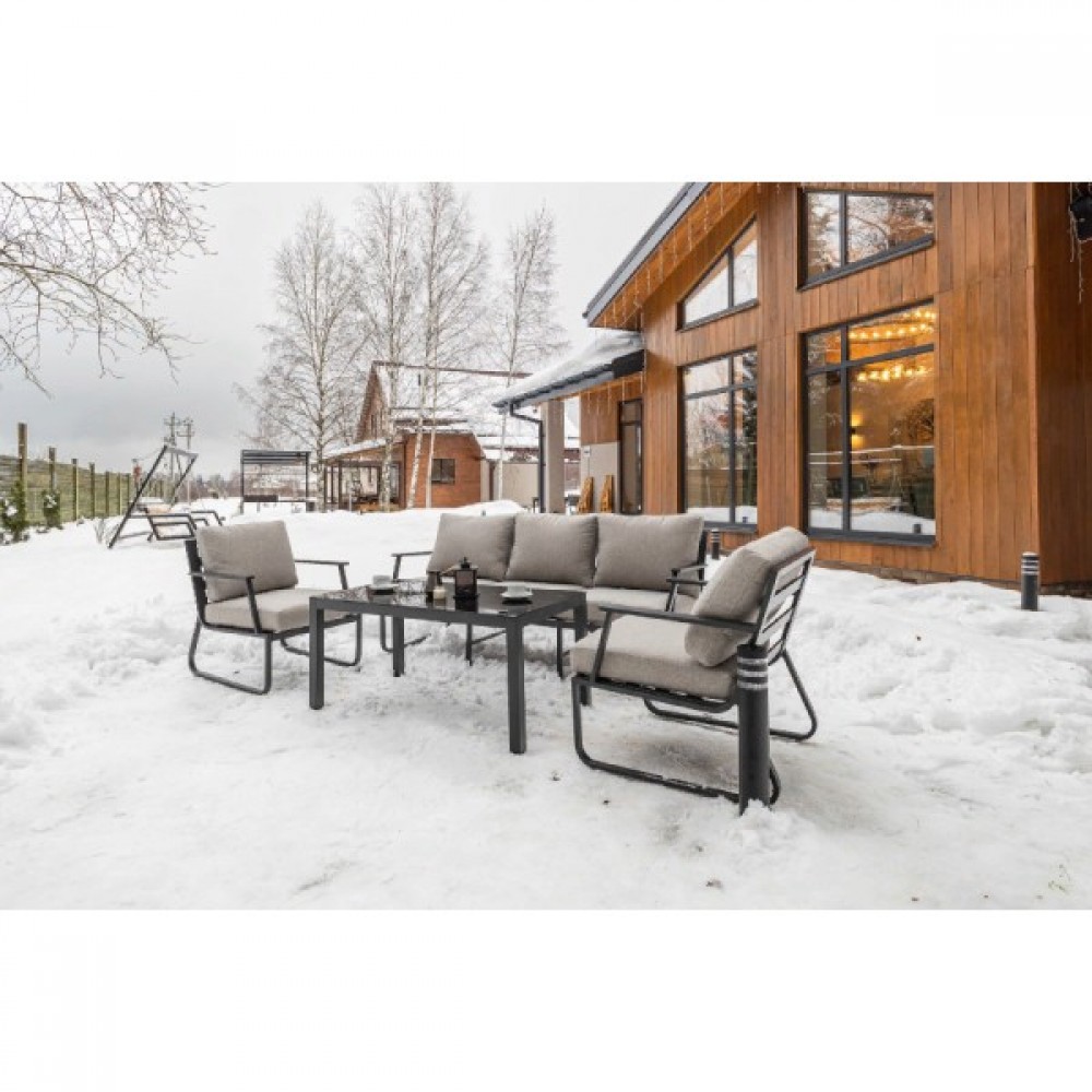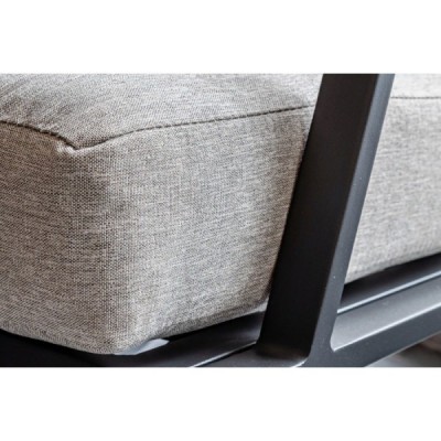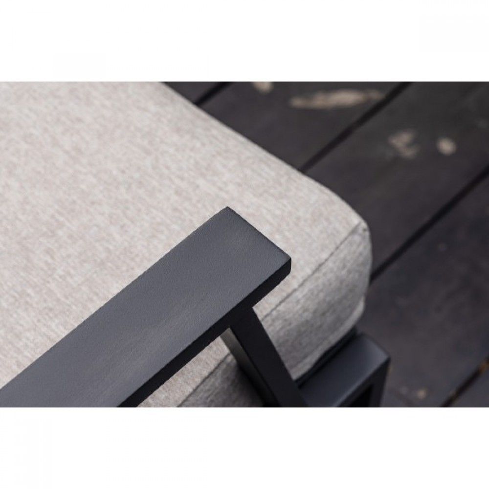 Алюминиевый каркас антрацитового цвета делает мебель легкой и прочной одновременно, что позволяет использовать ее как на открытом воздухе, так и в помещении. Мебель выдерживает любые погодные условия, не выцветает на солнце и не ржавеет под дождем.