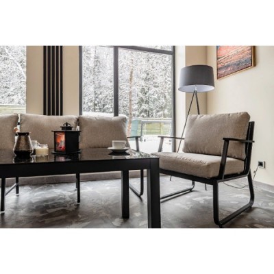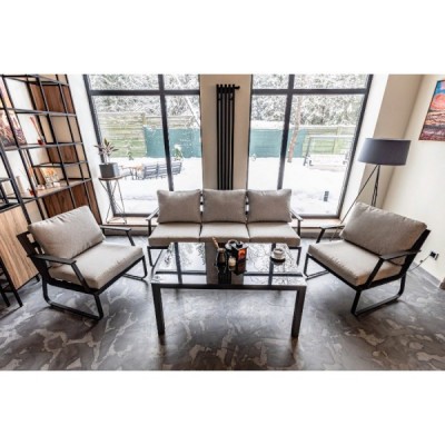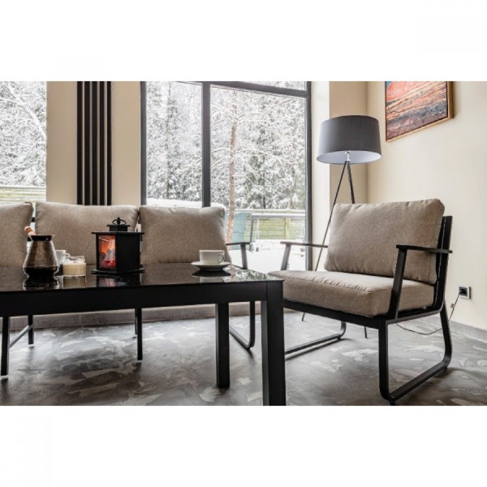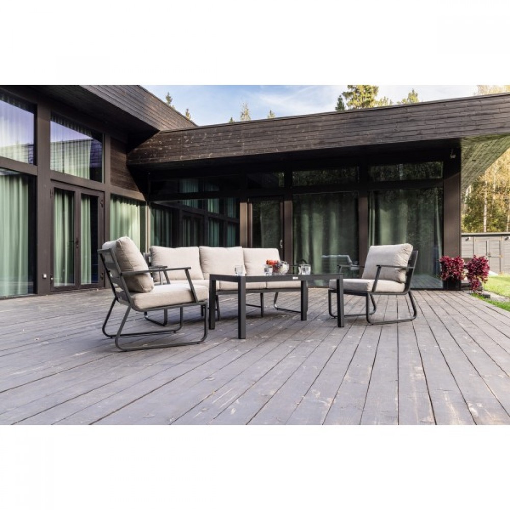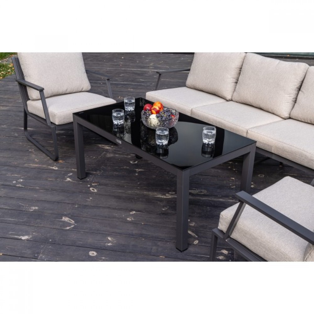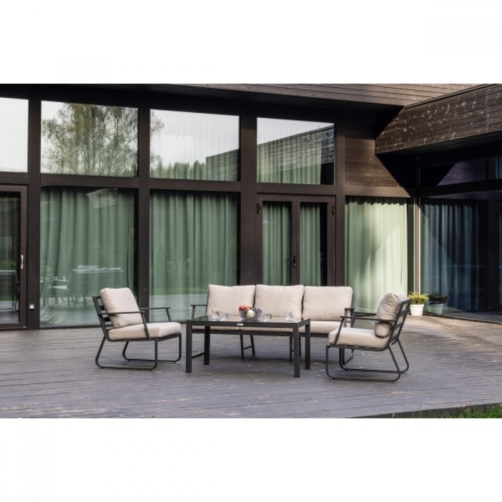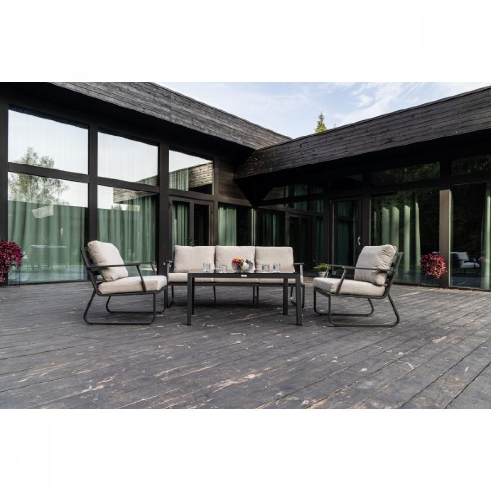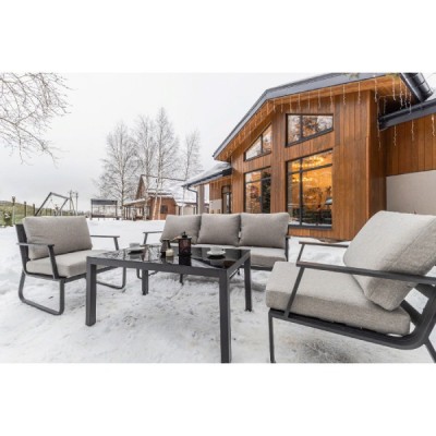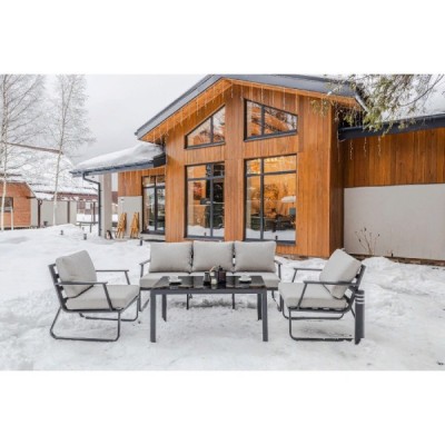 Алюминиевый каркас антрацитового цвета делает мебель легкой и прочной одновременно, что позволяет использовать ее как на открытом воздухе, так и в помещении. Мебель выдерживает любые погодные условия, не выцветает на солнце и не ржавеет под дождем.