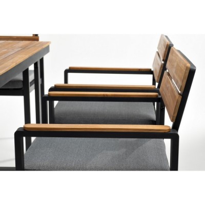 - Материал — алюминий, цвет каркаса темно-серый; массив акации 100% FSC, отделка экомаслом.