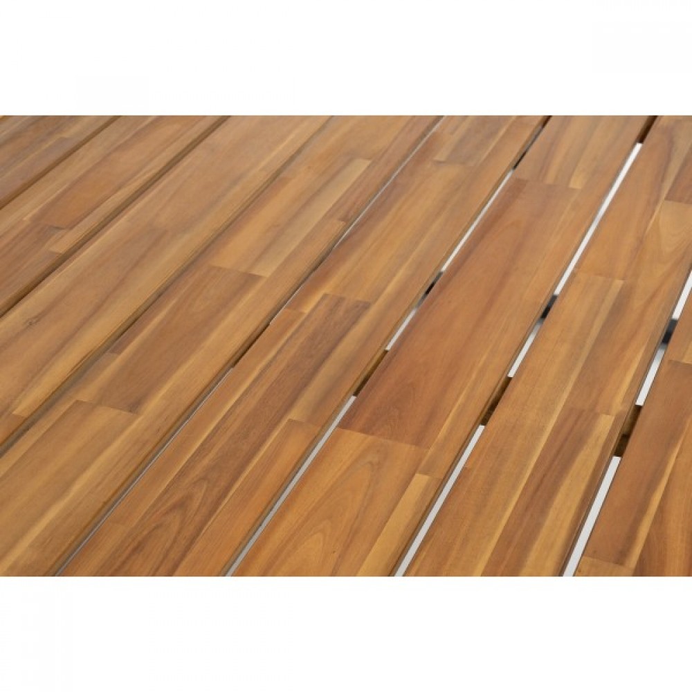 Материал каркаса — легкий и прочный алюминий, который обеспечивает устойчивость и долговечность. Дополняют конструкцию элегантные деревянные элементы, выполненные из массива акации.