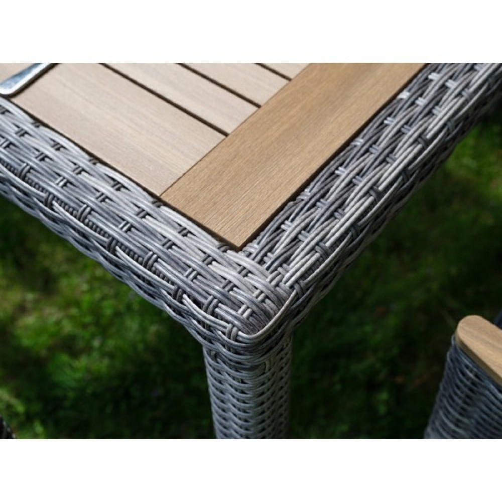 Каждое кресло оснащено поливудом (искусственное дерево) на подлокотниках, столешница выполнена из того же материала, что придает изысканный вид и обеспечивает дополнительный комфорт.