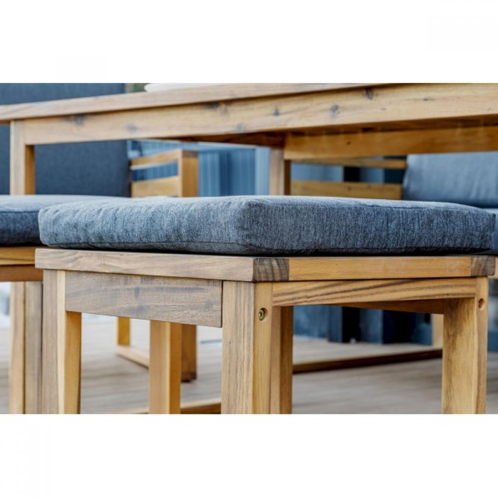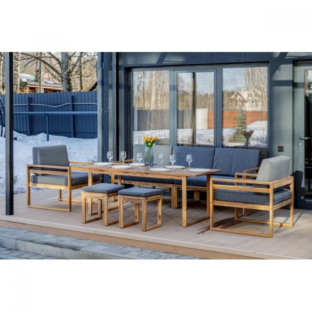 Представляем вам обеденный комплект BROOKLYN с уютным диваном, выполненный из прочной и красивой акации. Каркас и столешница изготовлены из того же материала, обеспечивая единый стиль и прочность.